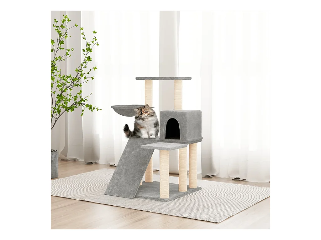 Norvik Arbre à chat avec griffoirs en sisal Gris clair 82 cm