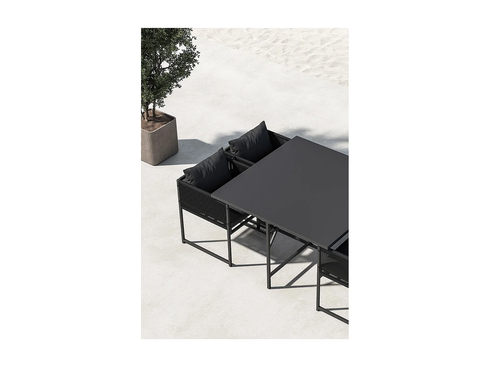 Noto ensemble de jardin 1 table à manger, 2 chaises noires.