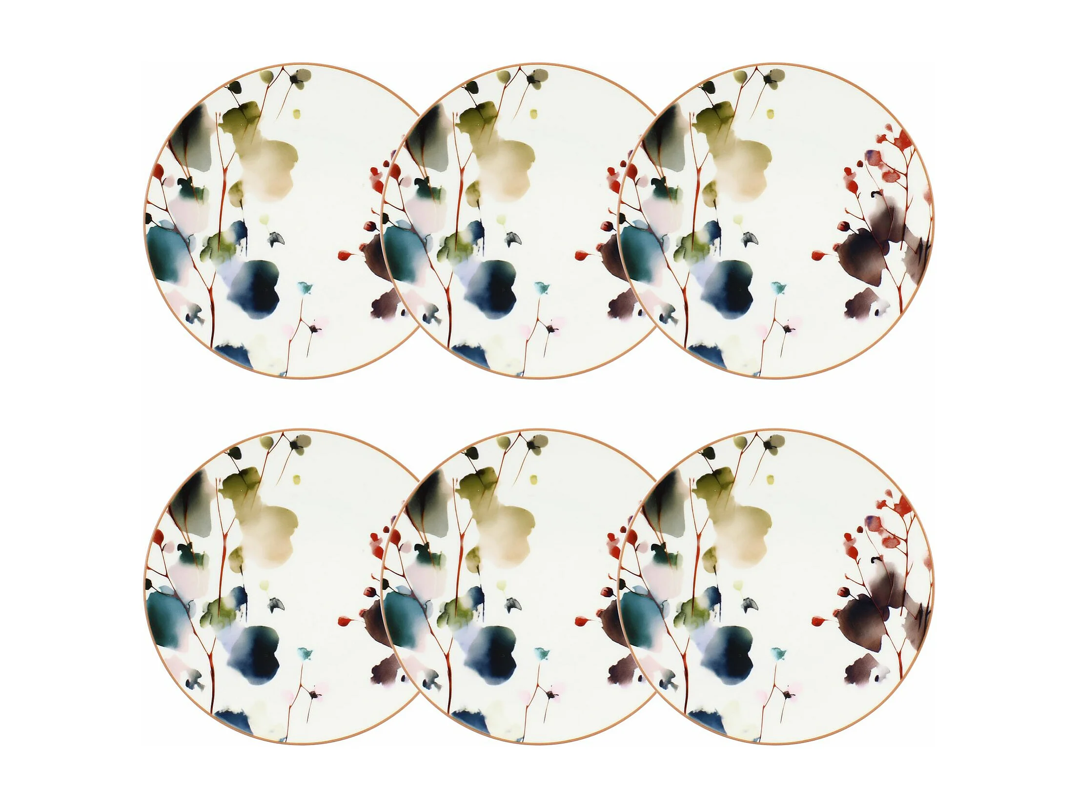 Novastyl - Lot 6 Assiettes A Dessert Aquarelle 20cm En Porcelaine