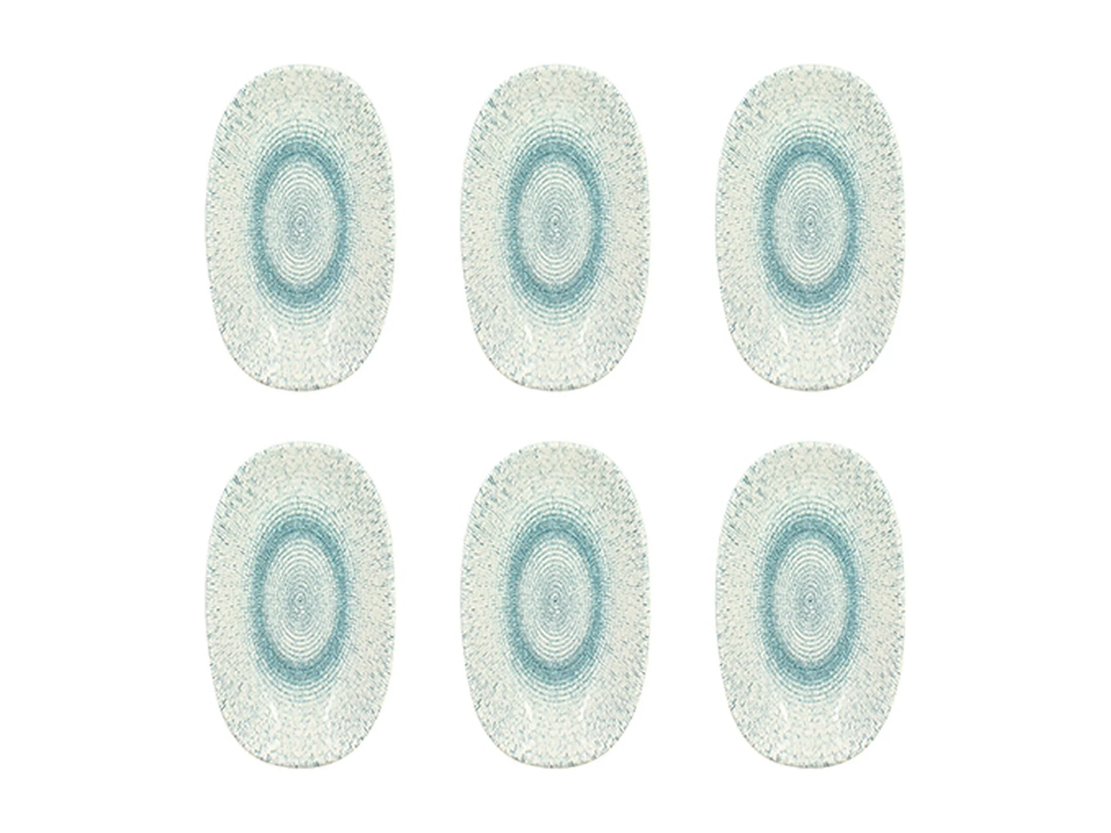 Novastyl - Lot 6 Assiettes Ovales Aqua 19x10.5cm En Porcelaine Blanc Et Bleu