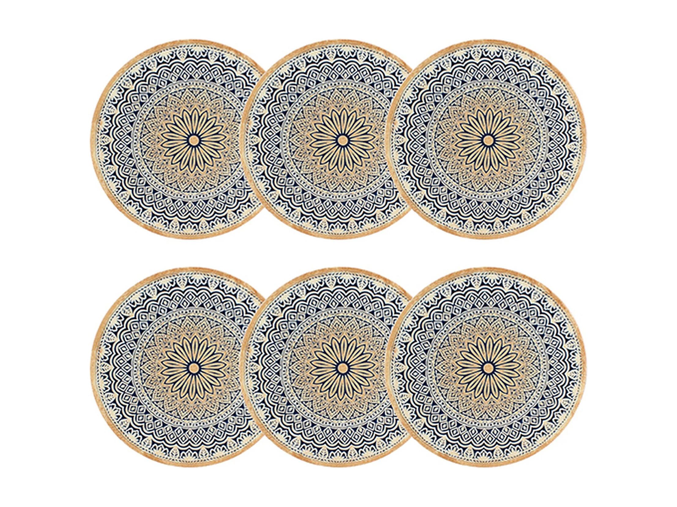 Set de 6 assiettes plates en porcelaine bleu mandala (Ø26cm) - MANDALA