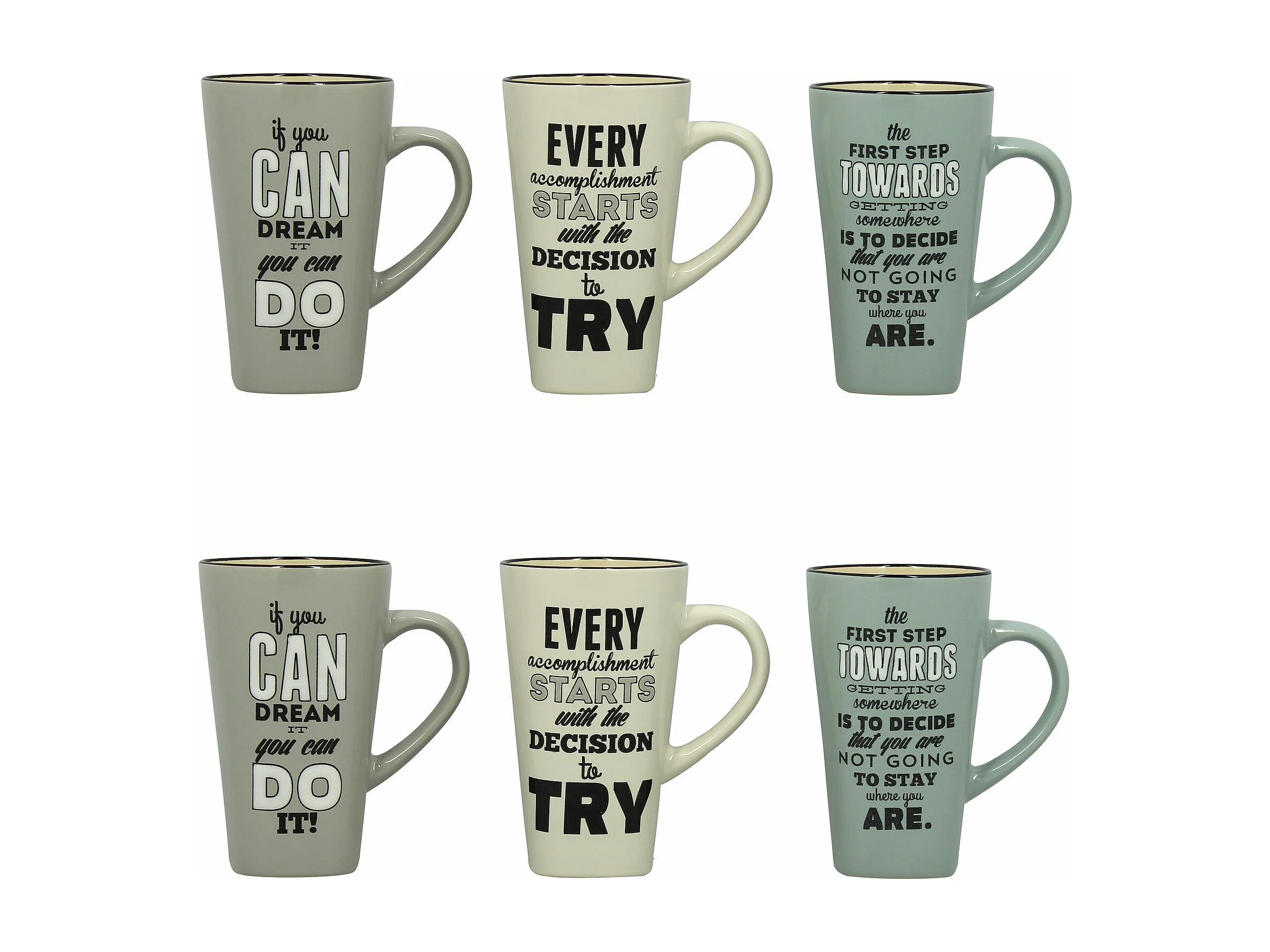 Novastyl - Lot 6 Mugs Citations 51cl En Gres 3 Decors Assortis
