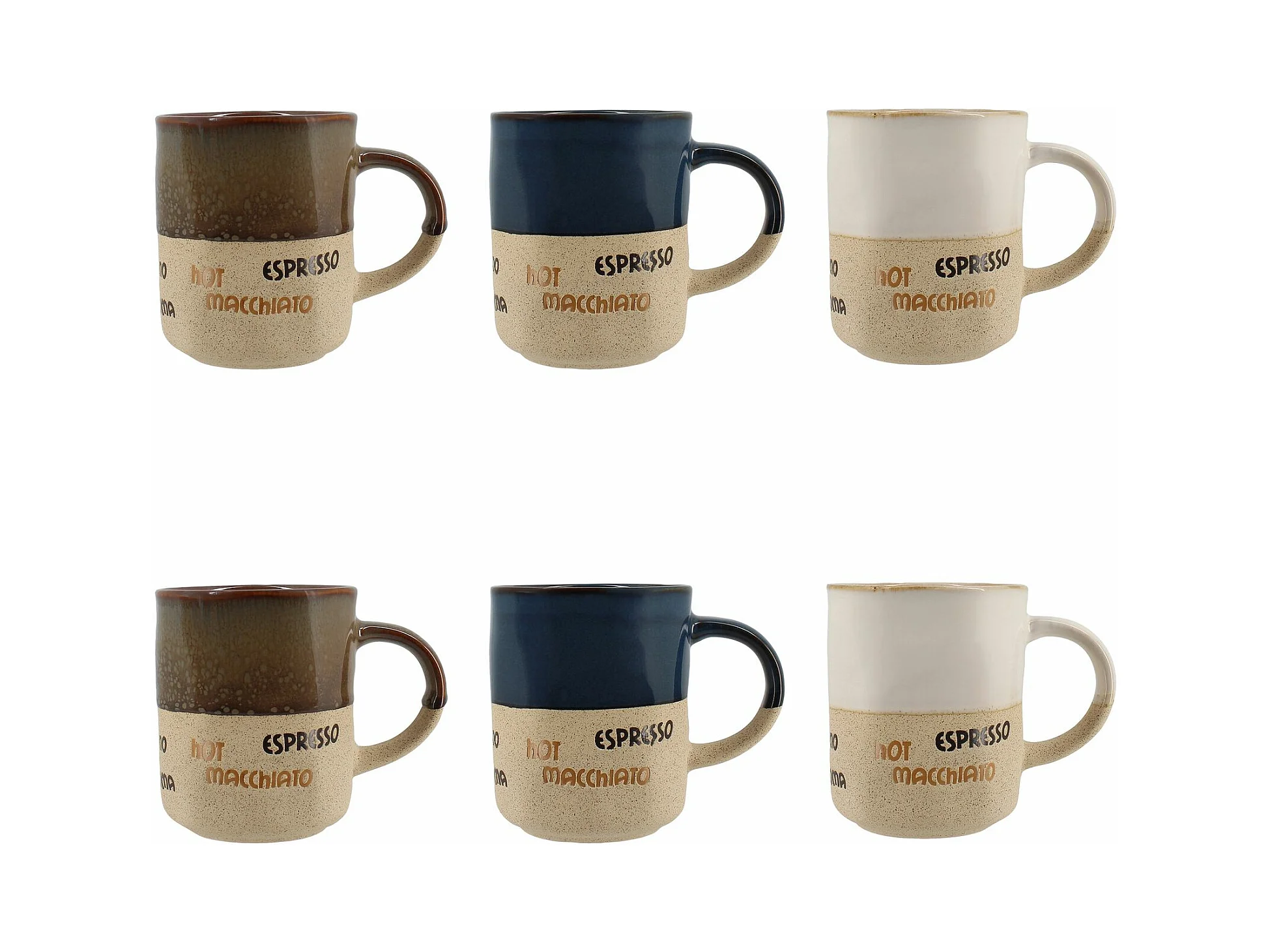 Novastyl - Lot 6 Mugs Macchiato 34cl En Ceramiques 3 Couleurs Assorties