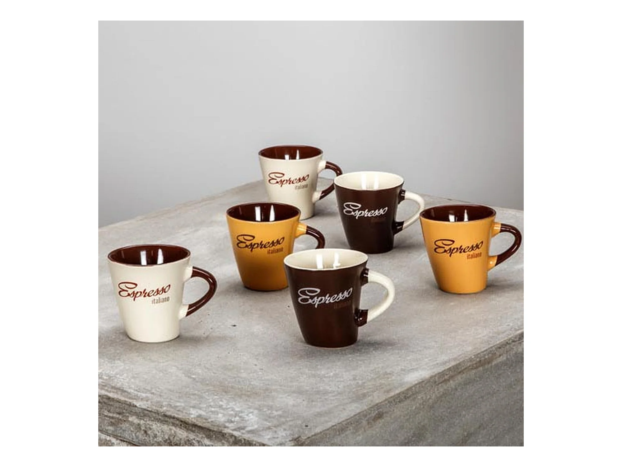 Novastyl - Lot 6 Tasses Expresso Italiano 15cl En Gres 3 Couleurs Assorties