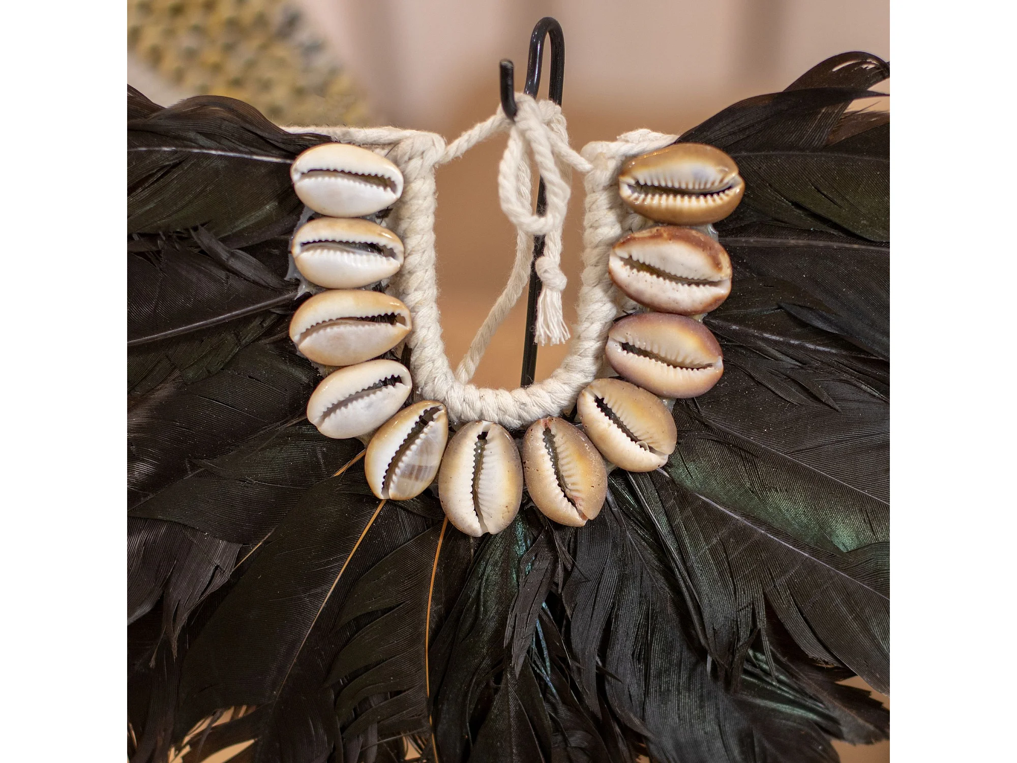 Now's Home - Collier En Plumes Noires Et Coquillages Sur Socle En Metal H32cm Mai