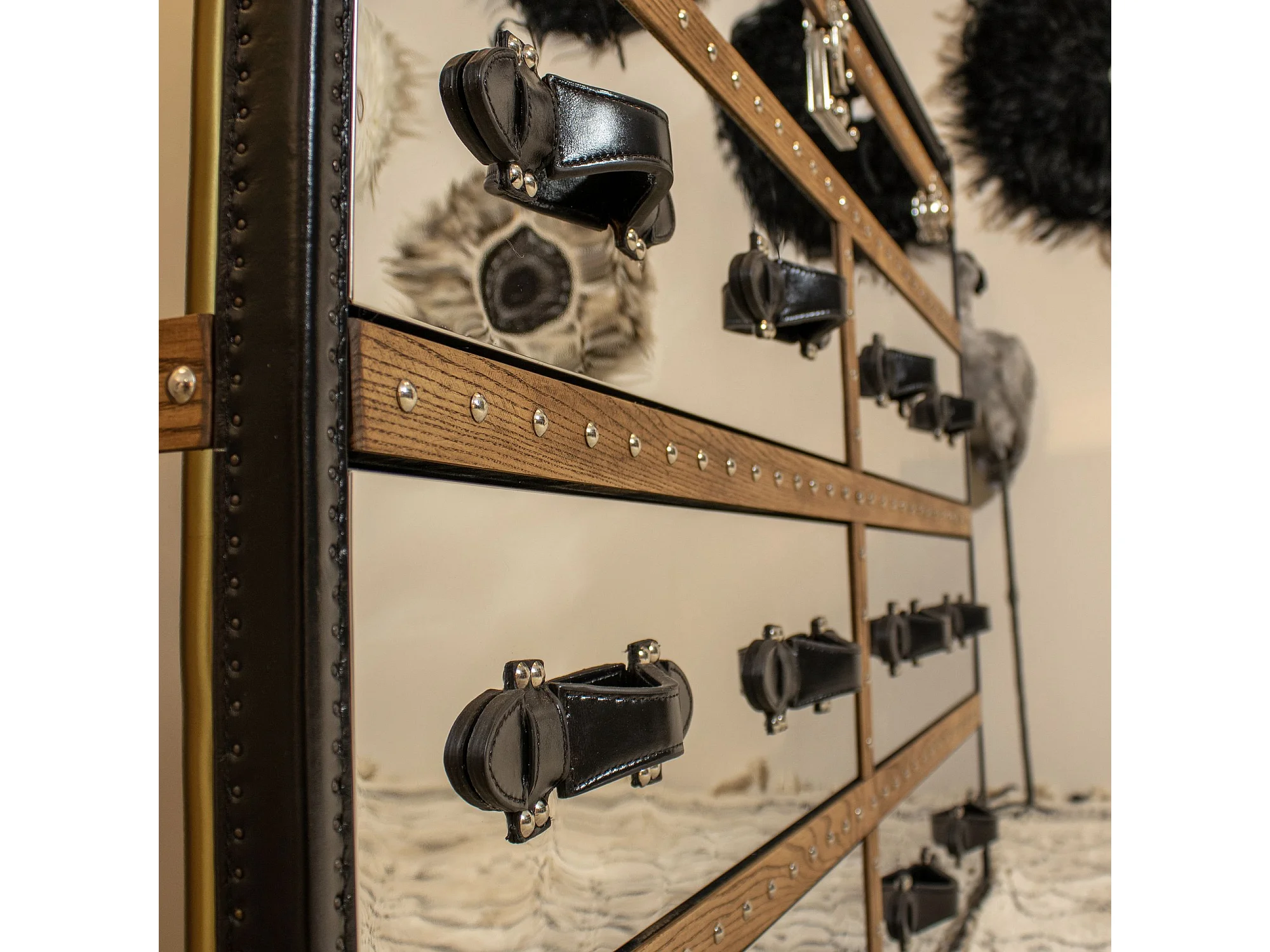 Now's Home - Commode Coffre Iliade 6tiroirs 150x49xht100cm Cuir Marron,a/inoxydable