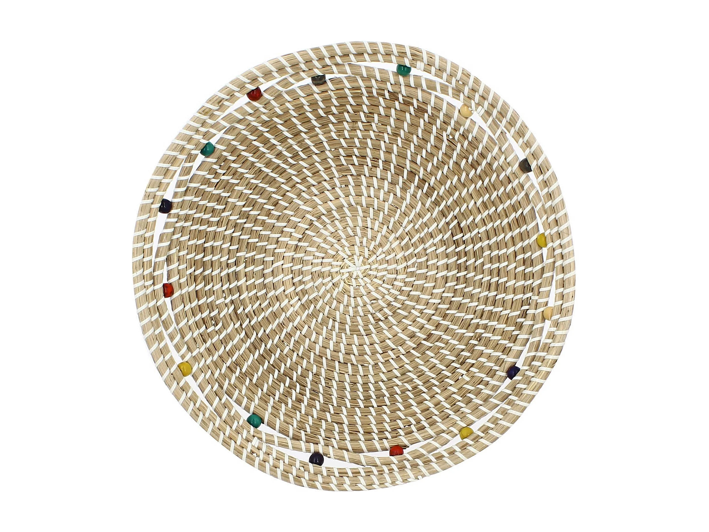 Now's Home - Panier Rond En Jonc De Mer Et Perles De Bois D40xh5cm Milos