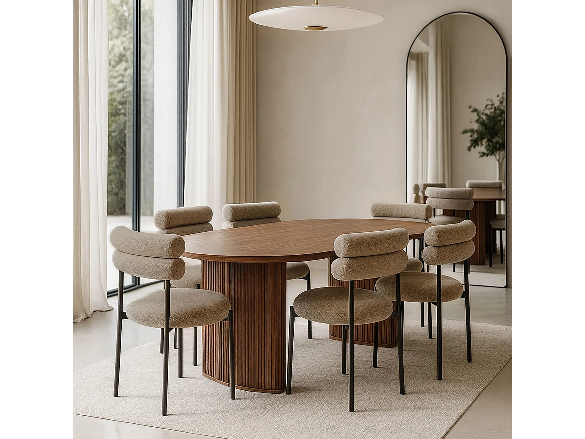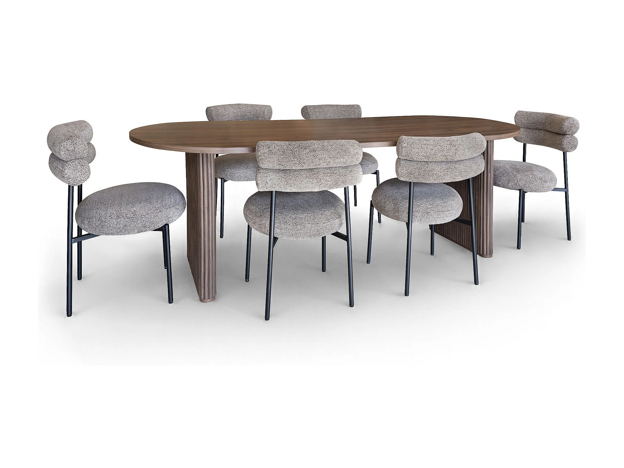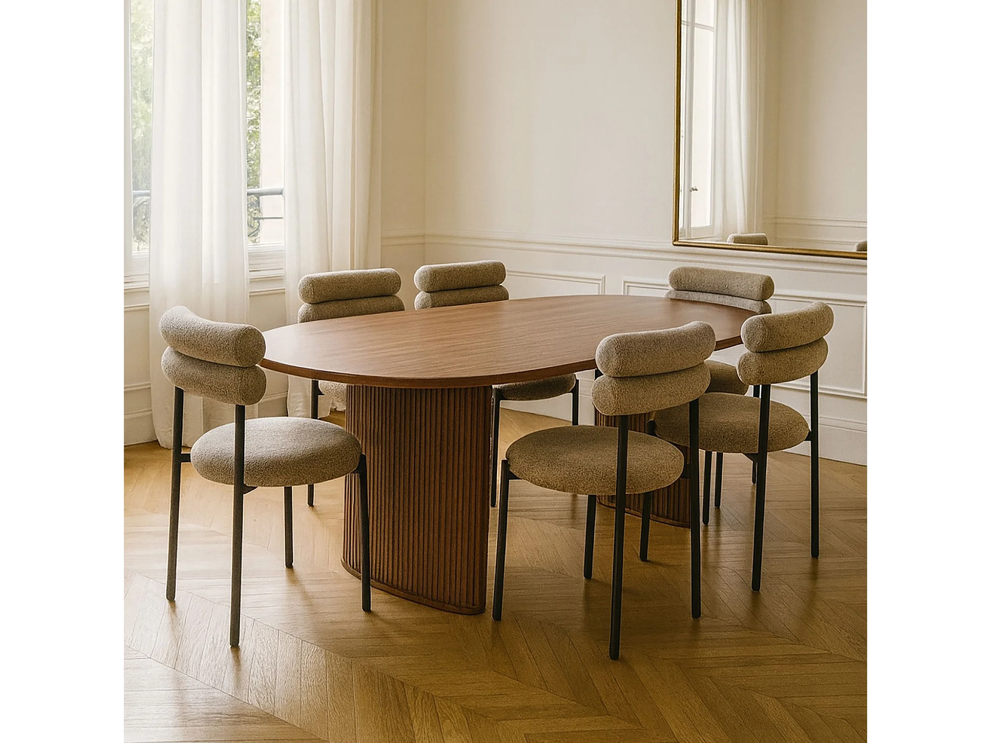 Now's Home - Ensemble Table Ovale Et 6 Chaises En Tweed Moka