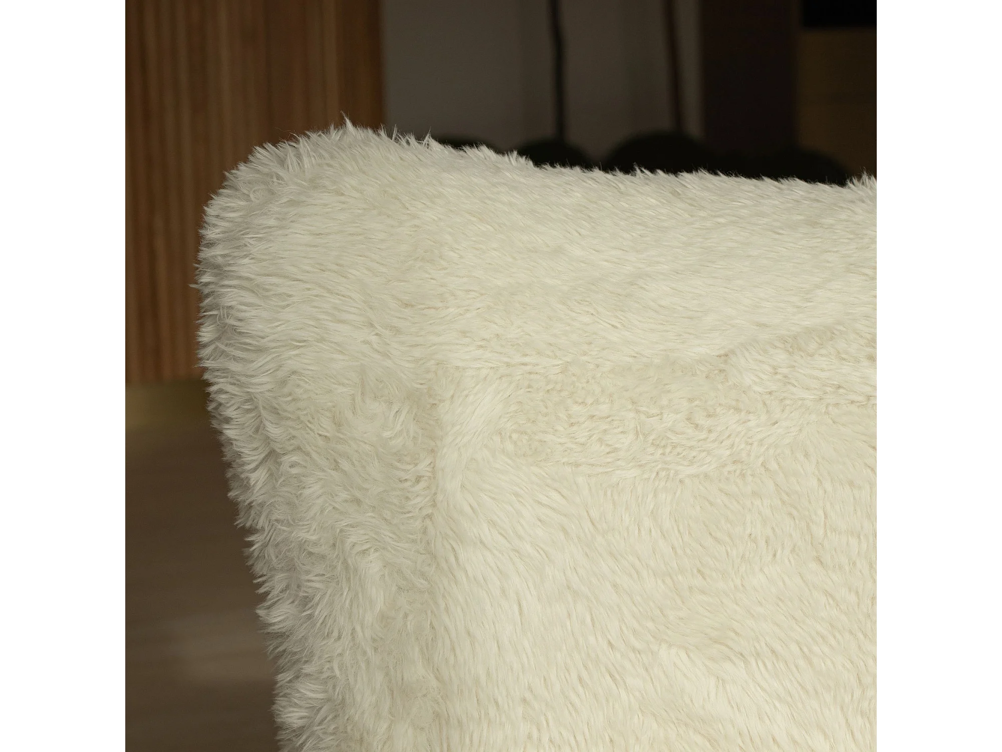 Now's Home - Fauteuil Effet Fourrure Blanc Avec Des Pieds En Bois 76x81x77cm Artic