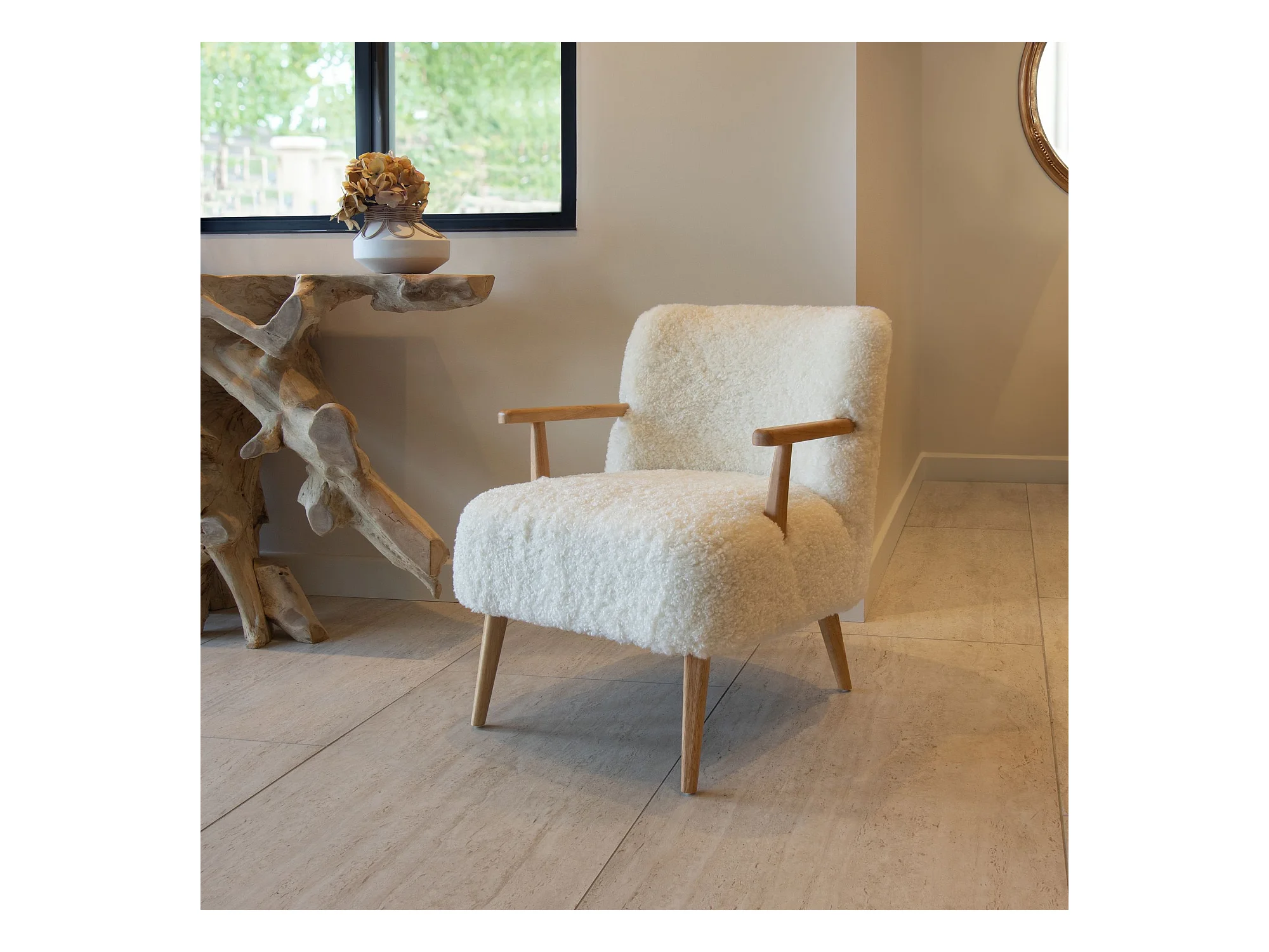 Now's Home - Fauteuil Effet Fourrure Ecru Structure En Bois 62x65.5x70.5cm Eliot