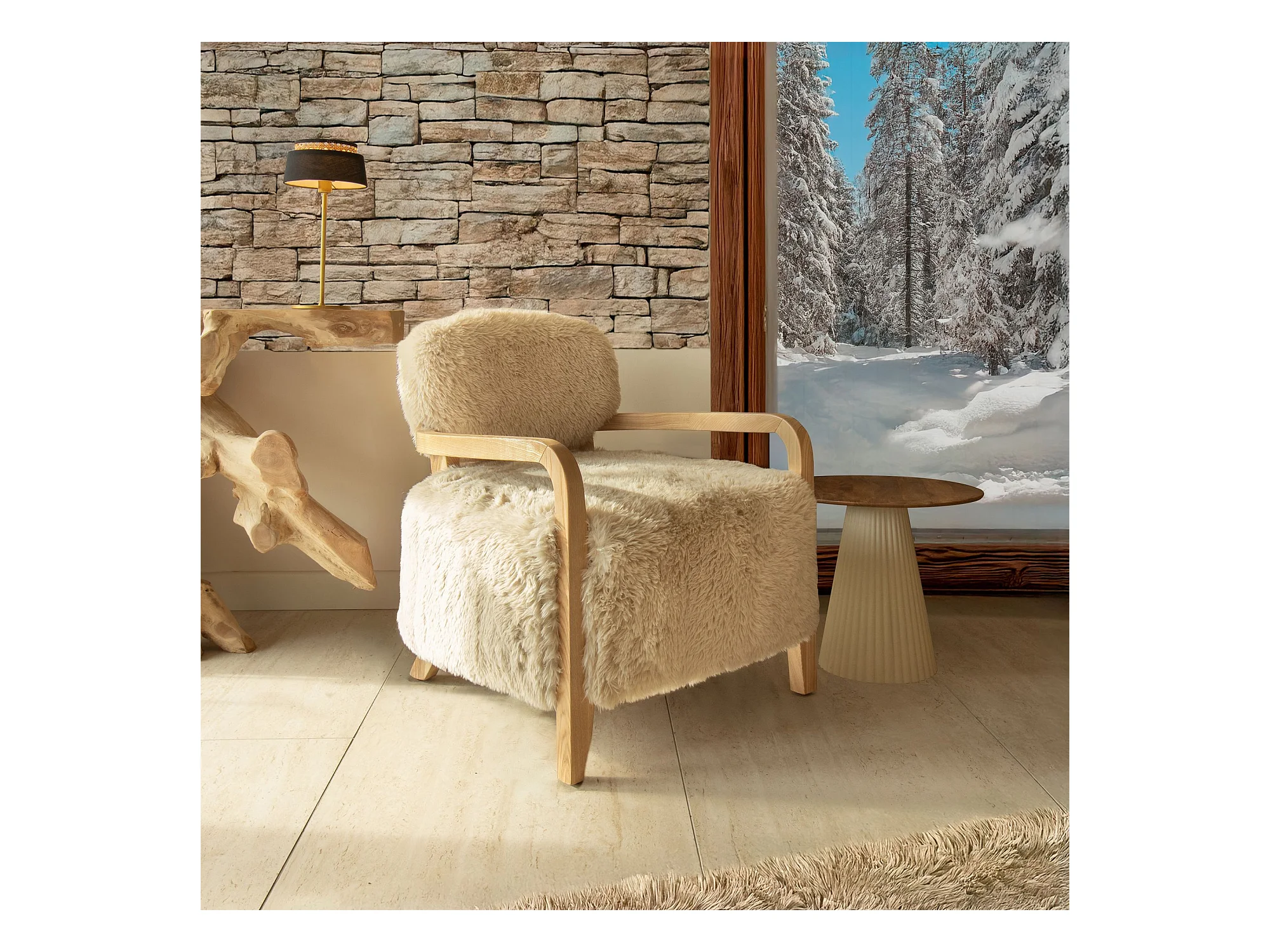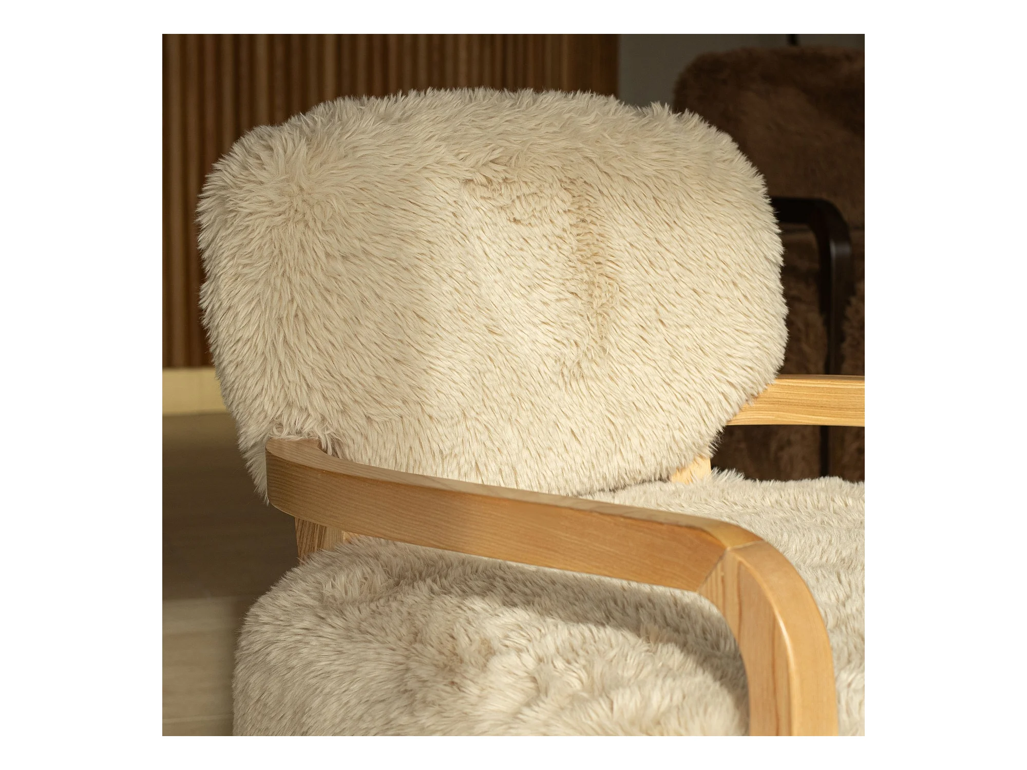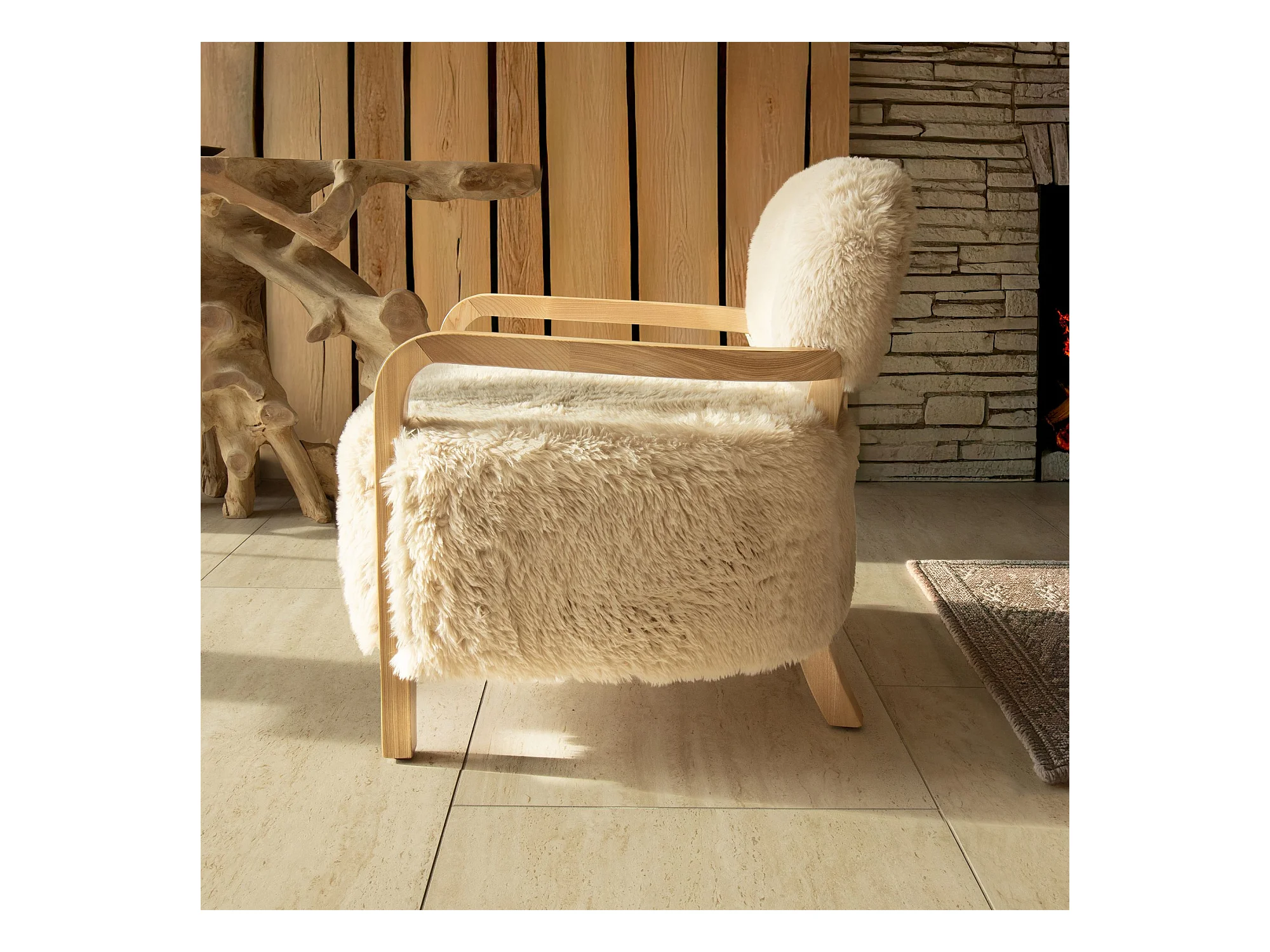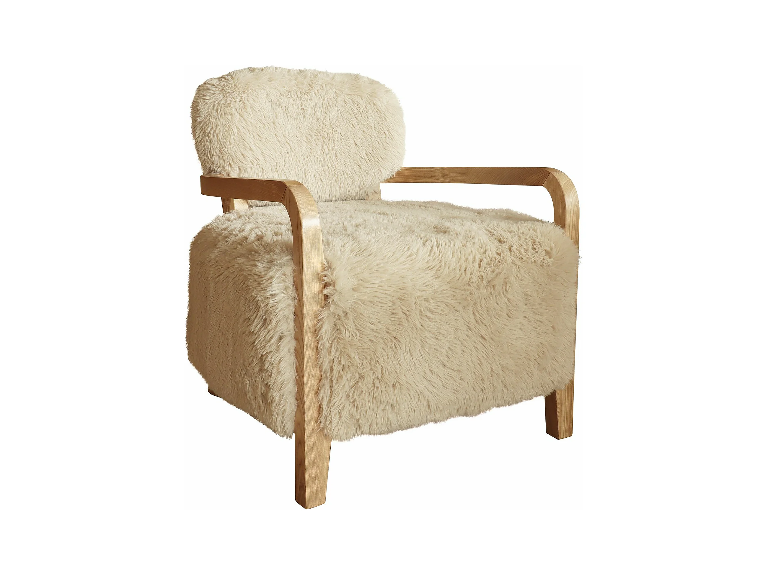 Now's Home - Fauteuil En Tissu Doux Effet Mouton Beige Pieds En Bois 71x79x77cm Yack