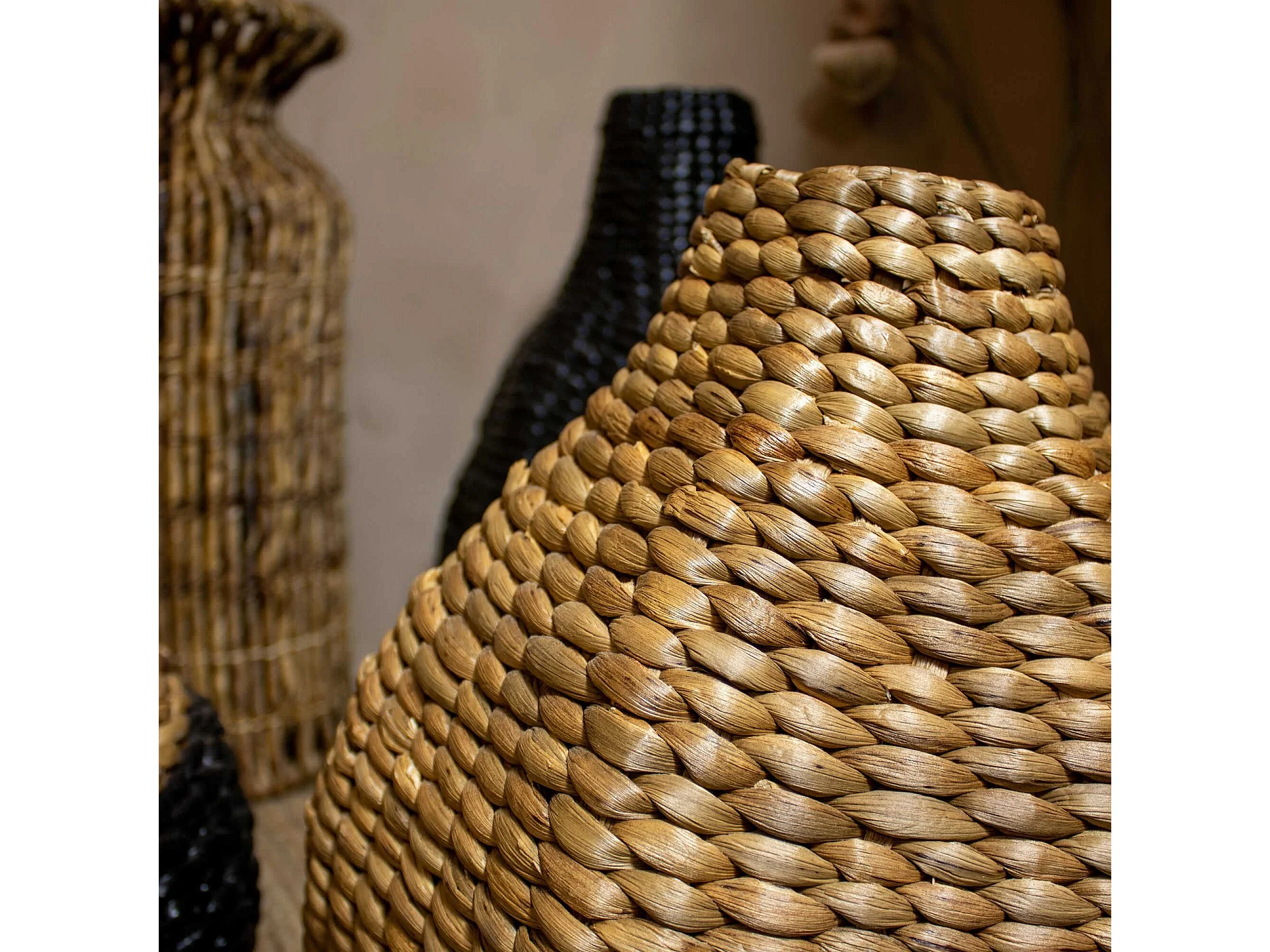 Jarre Tressée en Rotin Coloris Naturel et Noir - LEVAN