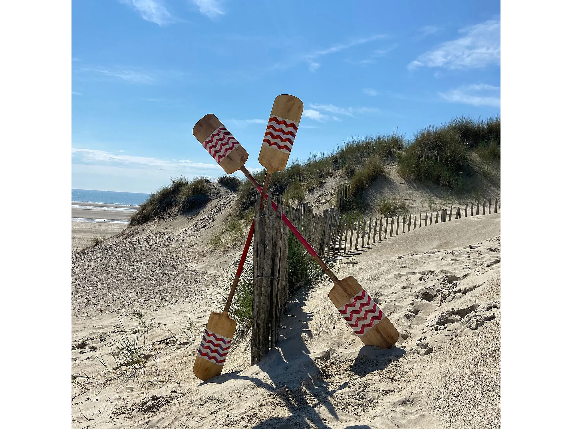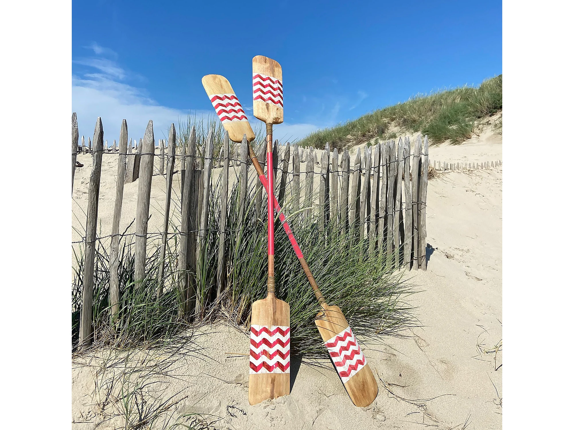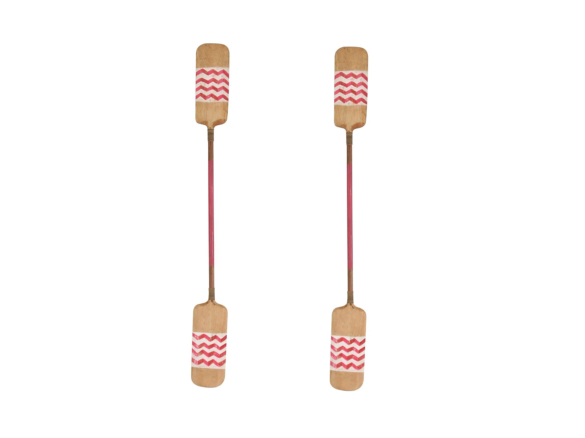 Now's Home - Lot 2 Pagaies Doubles Rose En Bois Peinte A La Main 20x5x185cm Fufoa