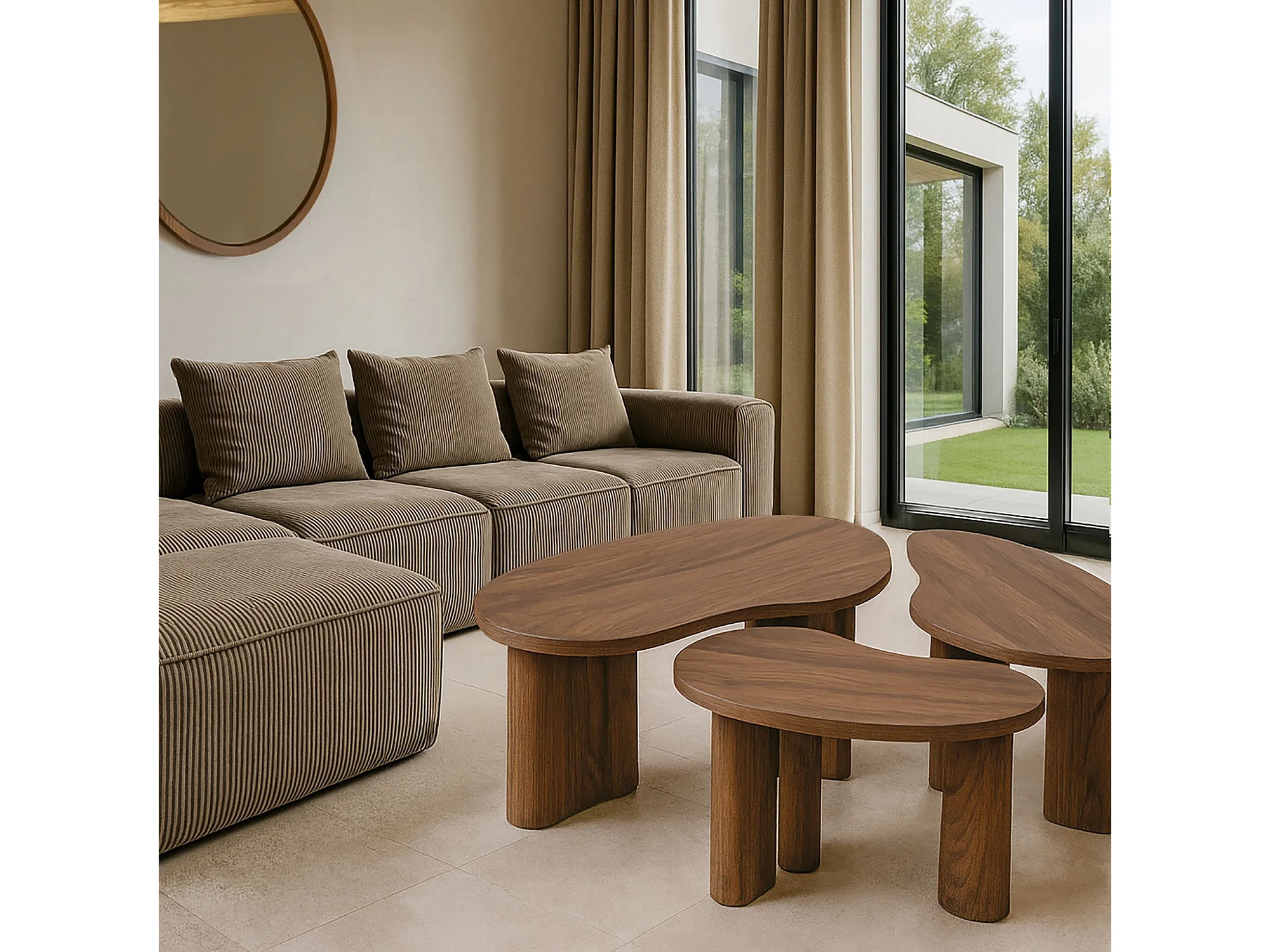 Now's Home - Lot De 3 Tables Basses Organiques Effet Noyer Charlie