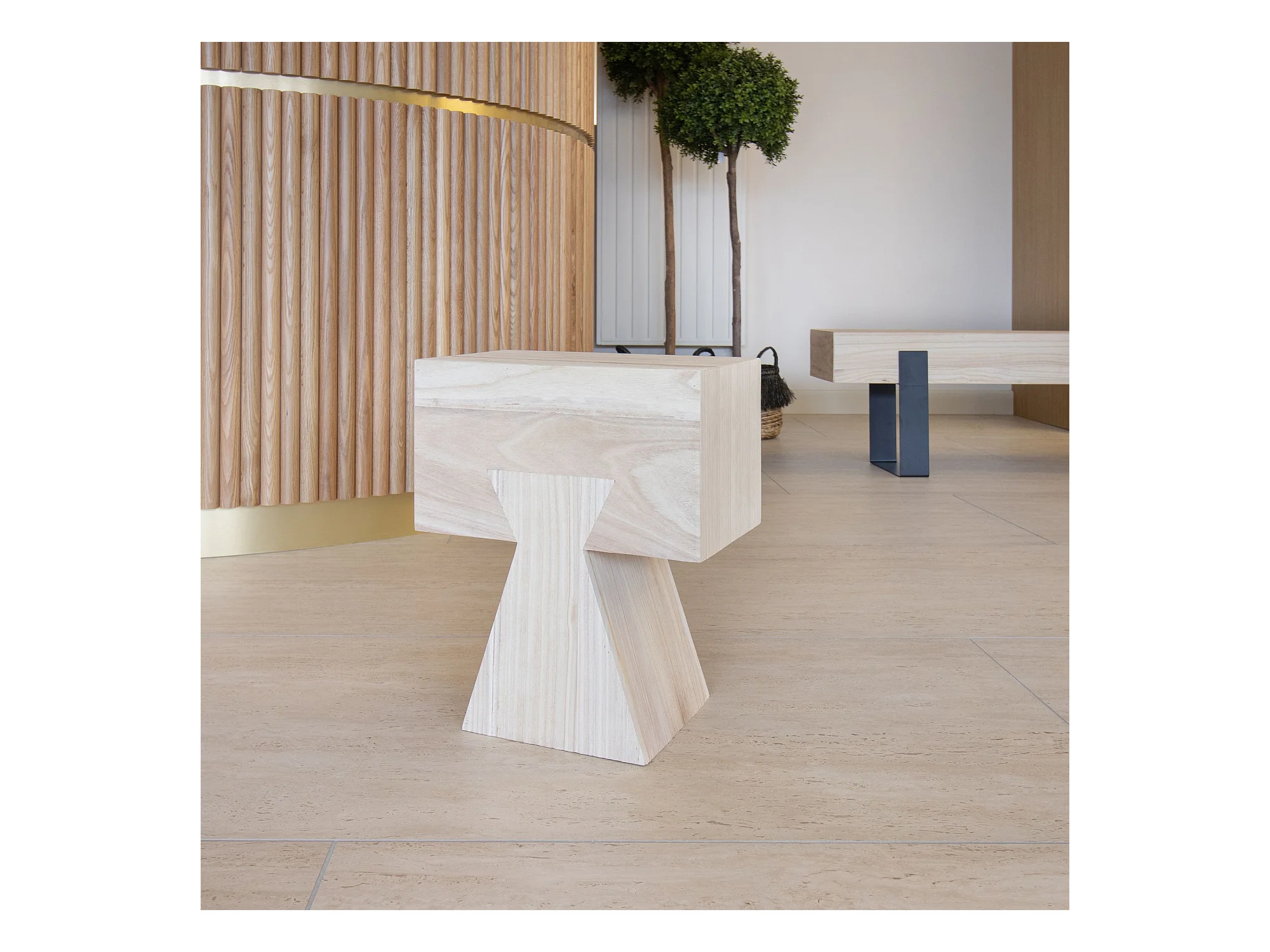 Tabouret en Bois naturel rendu artisanal L 34 cm