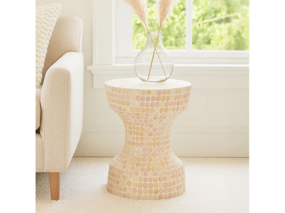 Now's Home - Meuble D'appoint En Coquilles De Capiz Rose 40x40xht48cm Elora