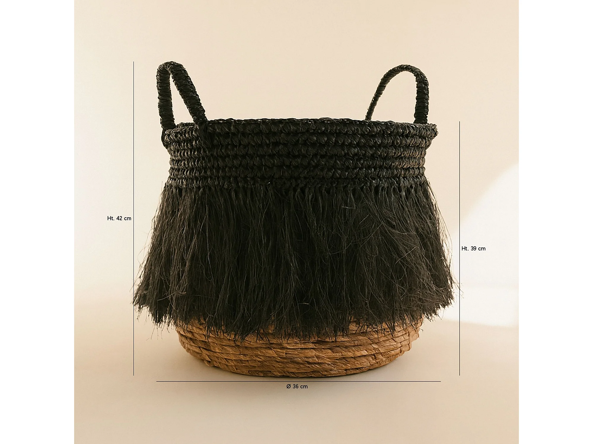 Now's Home - Panier Naturel A Franges Noires Grand Modele O36 X Ht39 Cm Tym