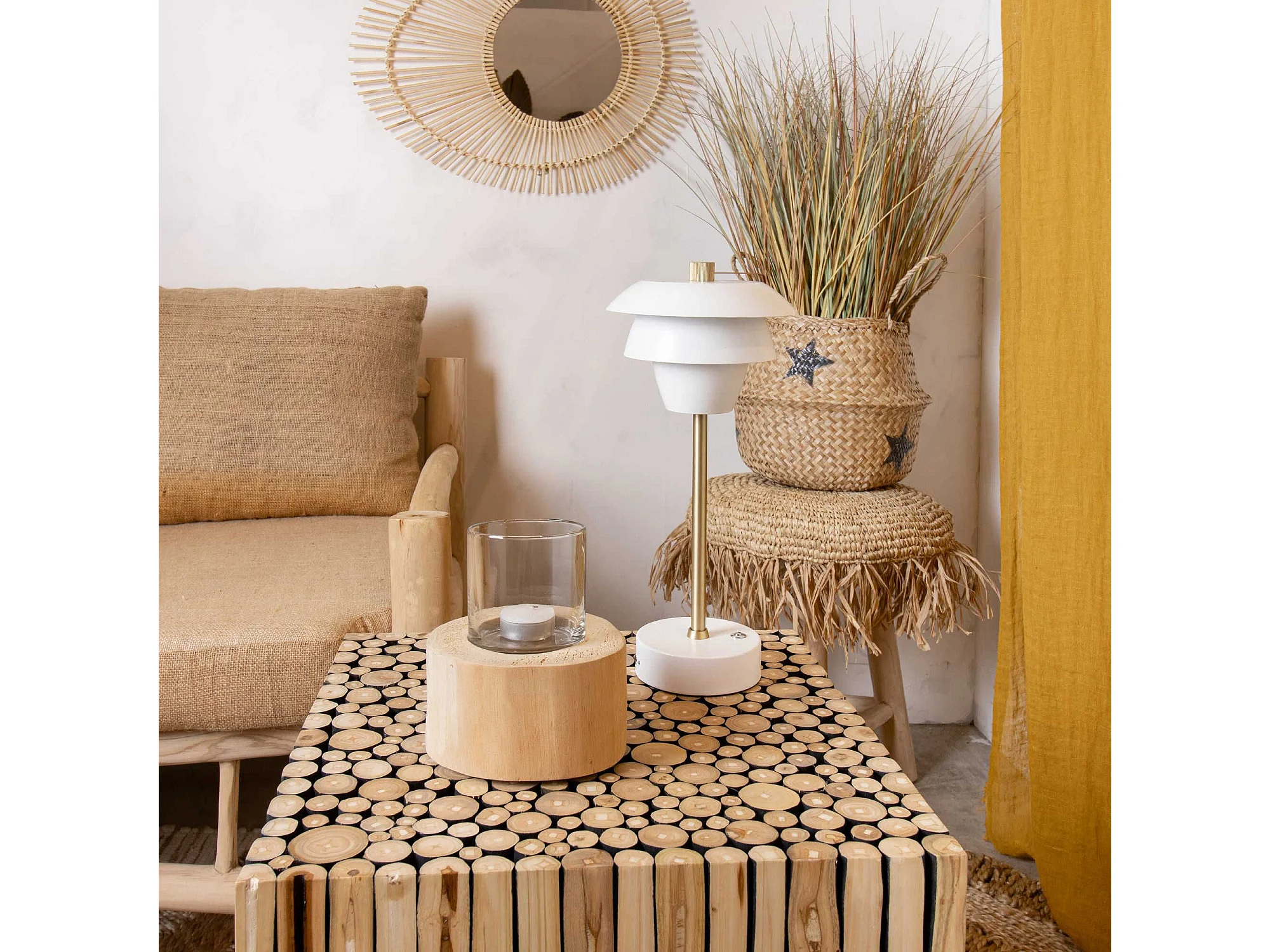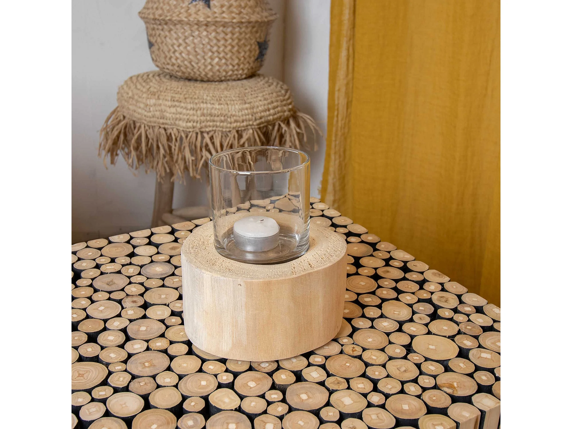 Now's Home - Photophore Avec Verre Base En Teck Dia13xh7cm Biak