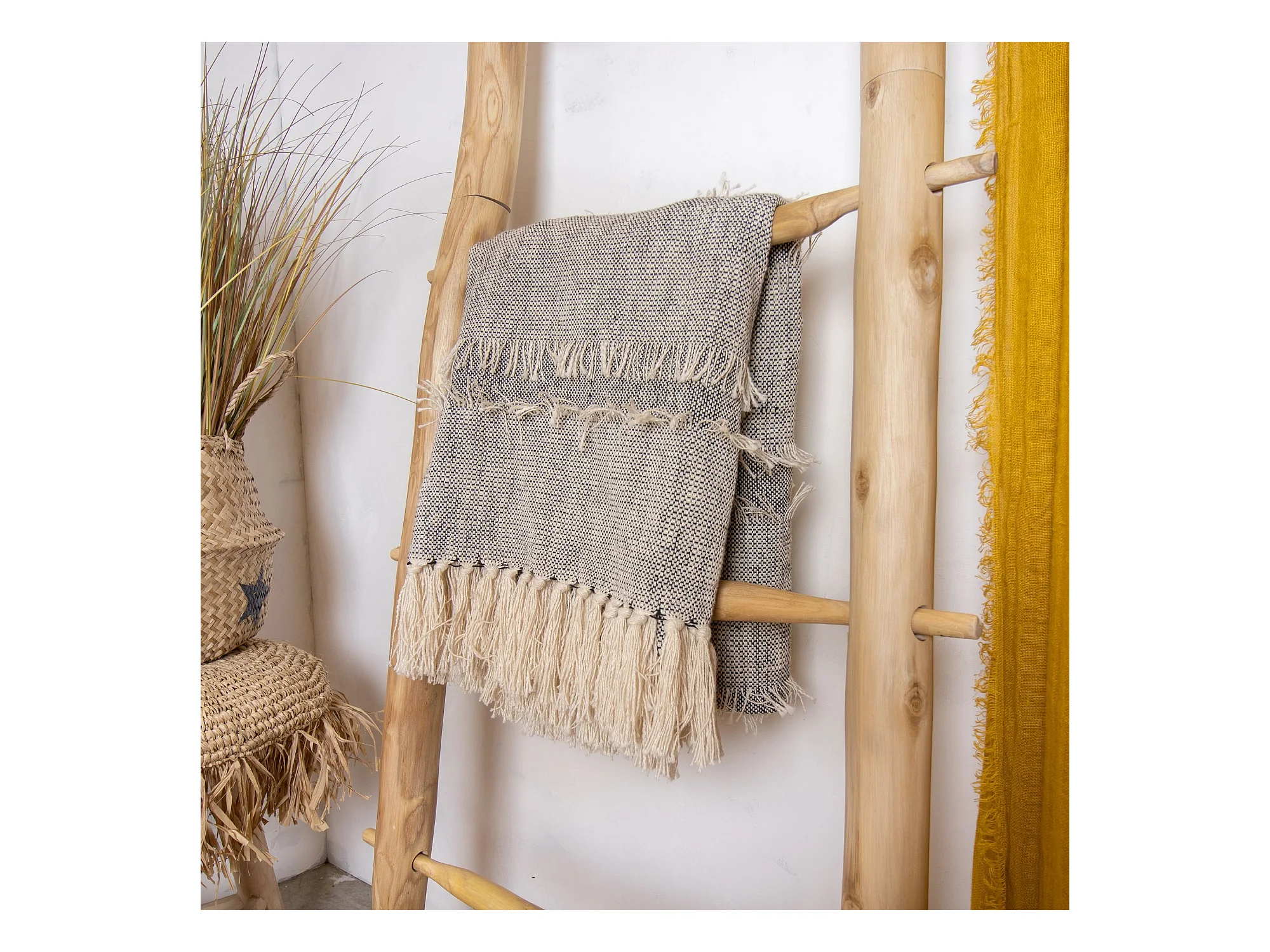 Plaid Ethnique à Franges "Pointillé" 120x150cm Écru