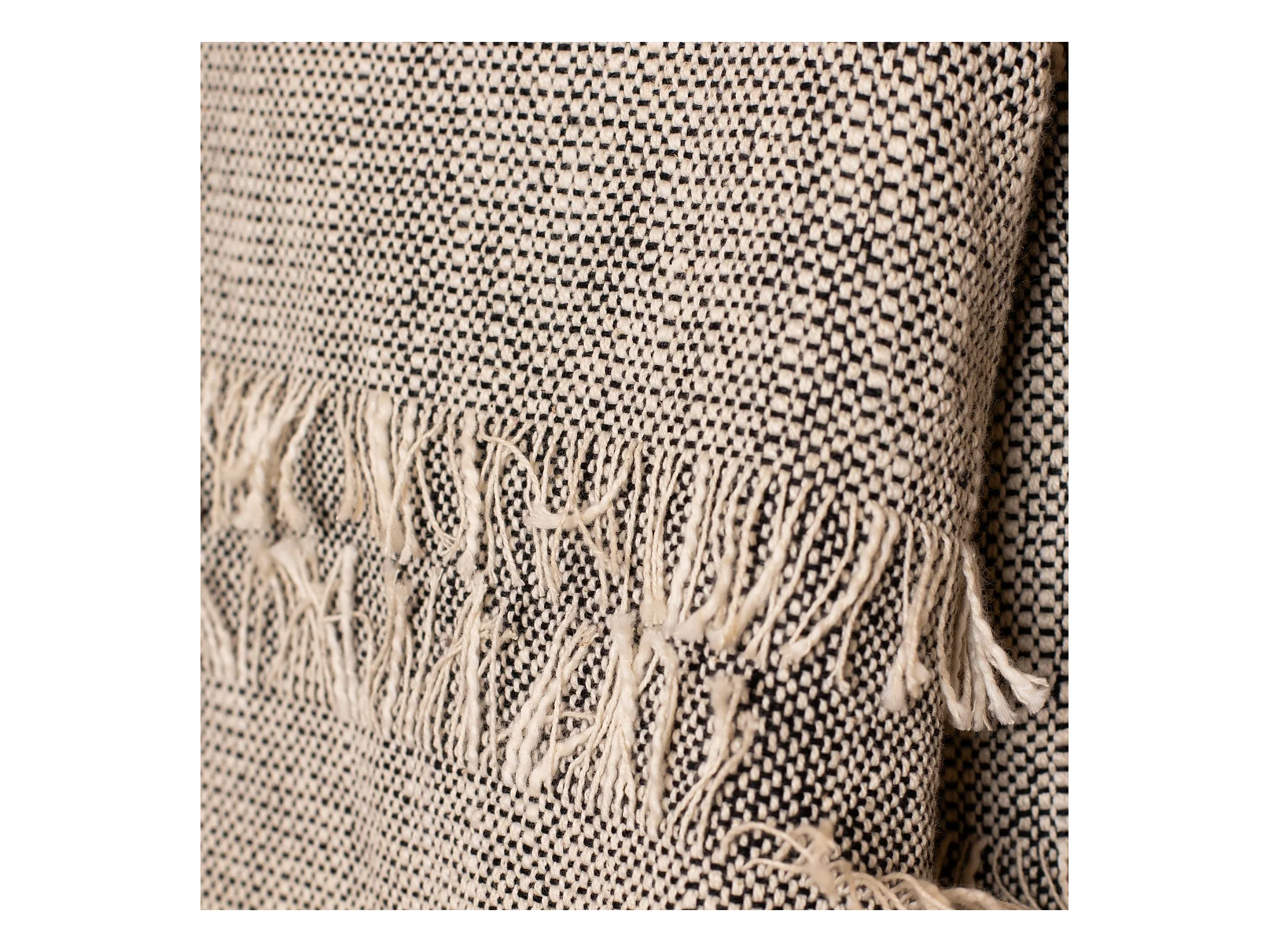 Now's Home - Plaid En Coton Tisse Main Mouchete Beige Noir Franges 125x150 Sherpa