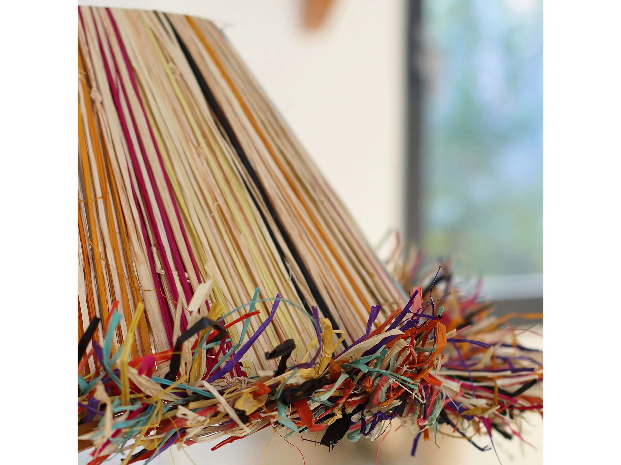 Now's Home - Suspension En Raphia Naturel Avec Franges Colorees D70x12cm Belaga