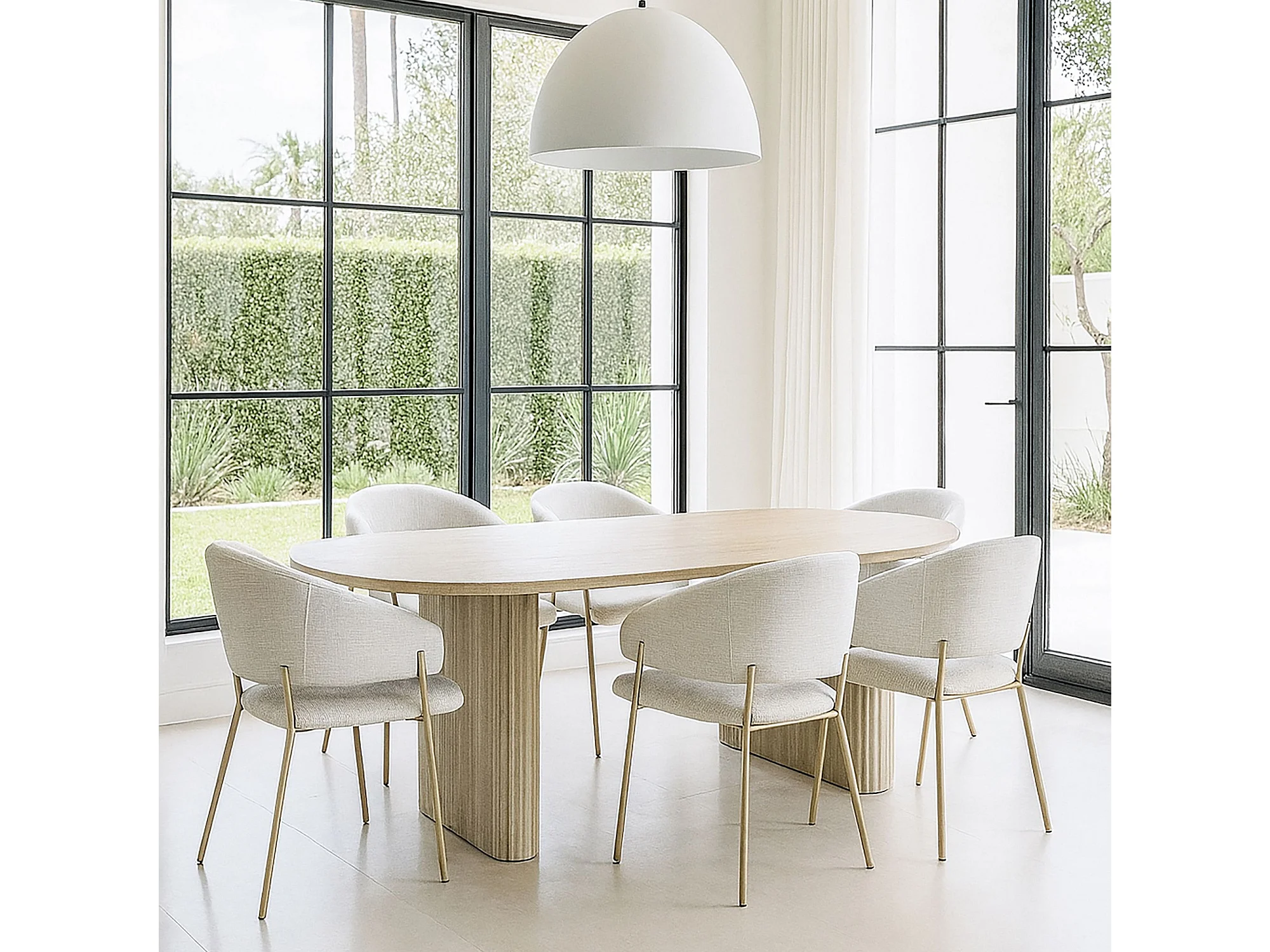 Now's Home - Ensemble Table Ovale Et 6 Fauteuils En Tissu Ecru