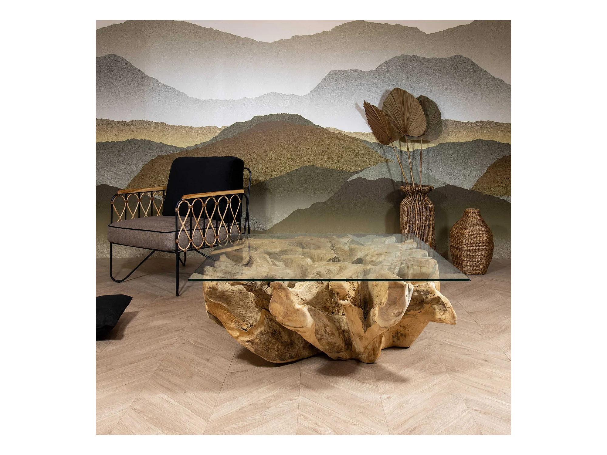 Now's Home - Table Basse En Racine De Teck Et Plateau En Verre 105cm