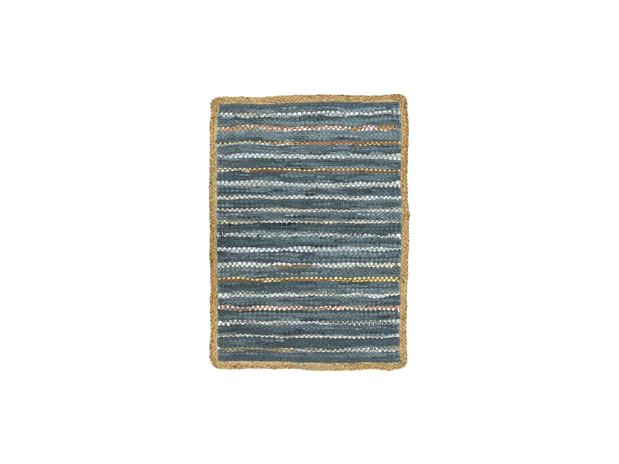 Now's Home - Tapis En Cuir Recycle Jute Et Coton Bleu Et Argente 60x80cm Asma