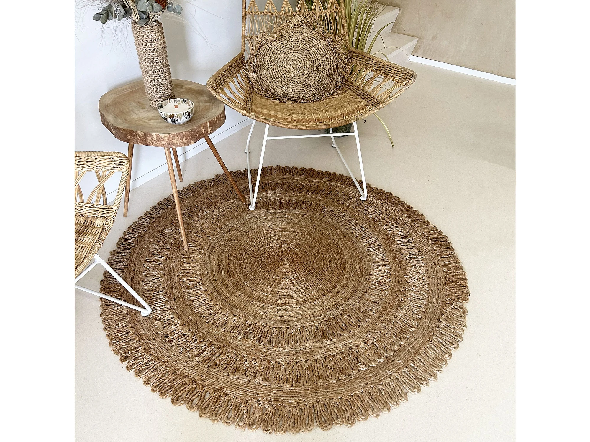 Tapis Jute design tressé 150cm rond