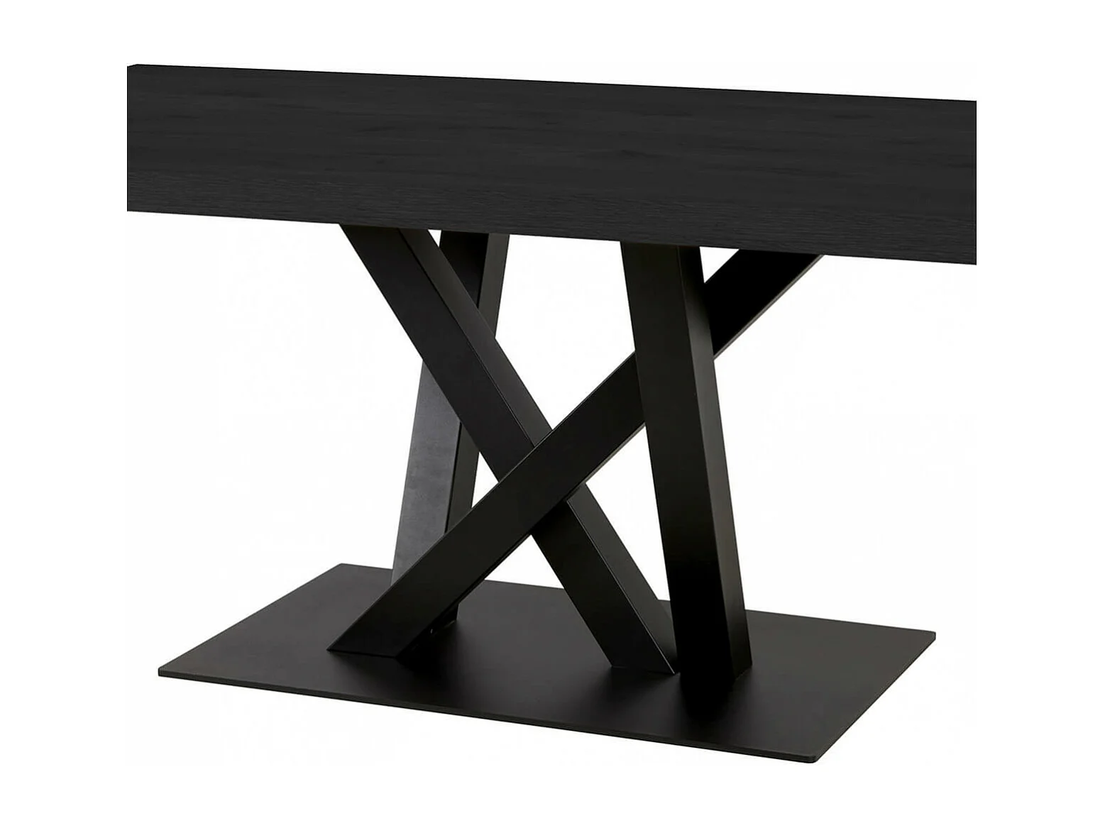 NOX - Table Rectangulaire 200cm Aspect Bois Noir Piètement Croisé Métal Noir