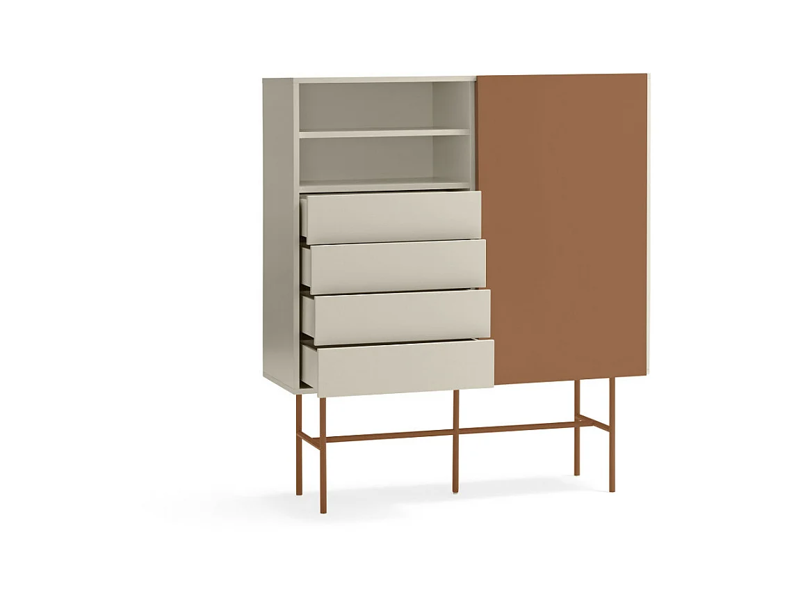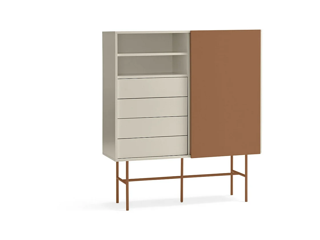 Nube - Buffet haut avec porte coulissante en bois H140cm - Marron argile
