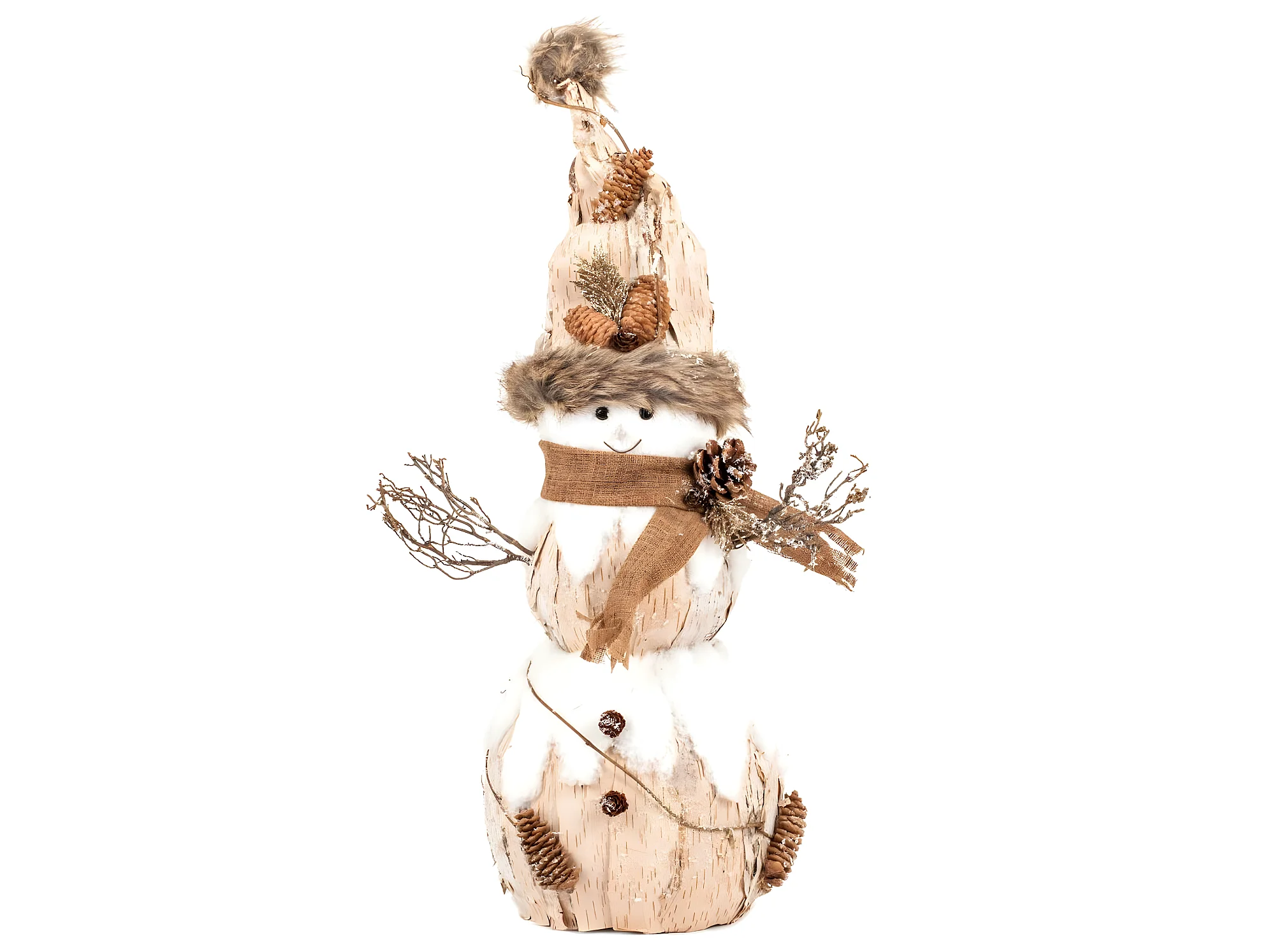 Déco de Noël Bonhomme de neige en Habit nature bois et écorces