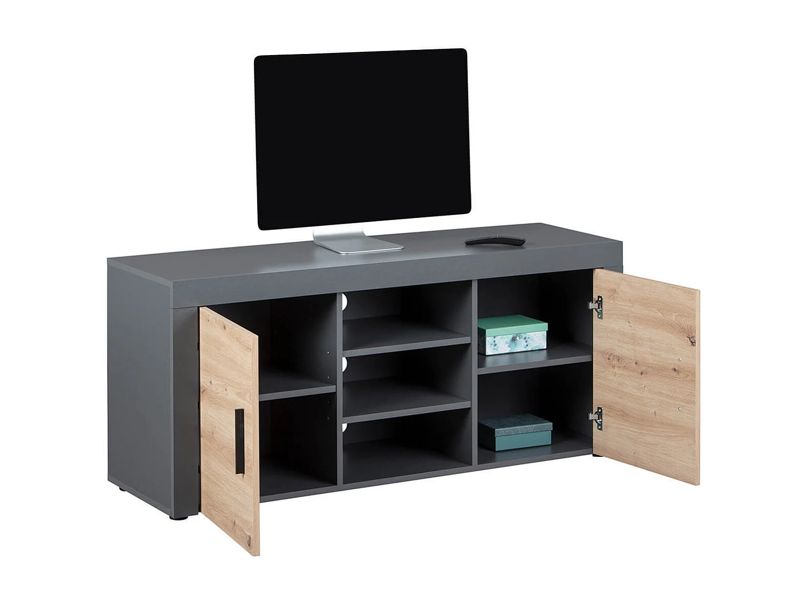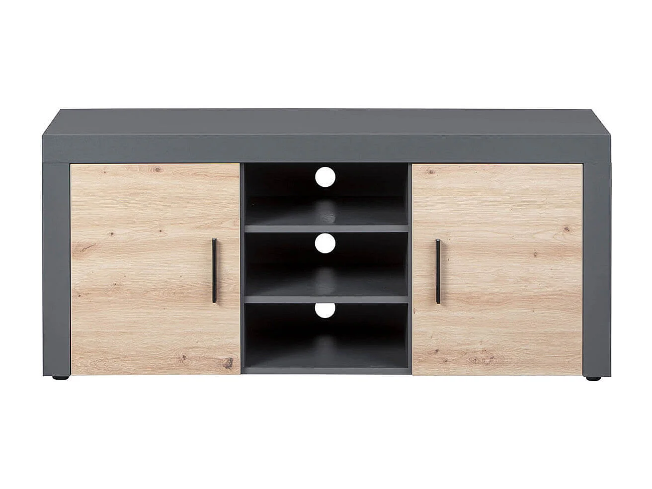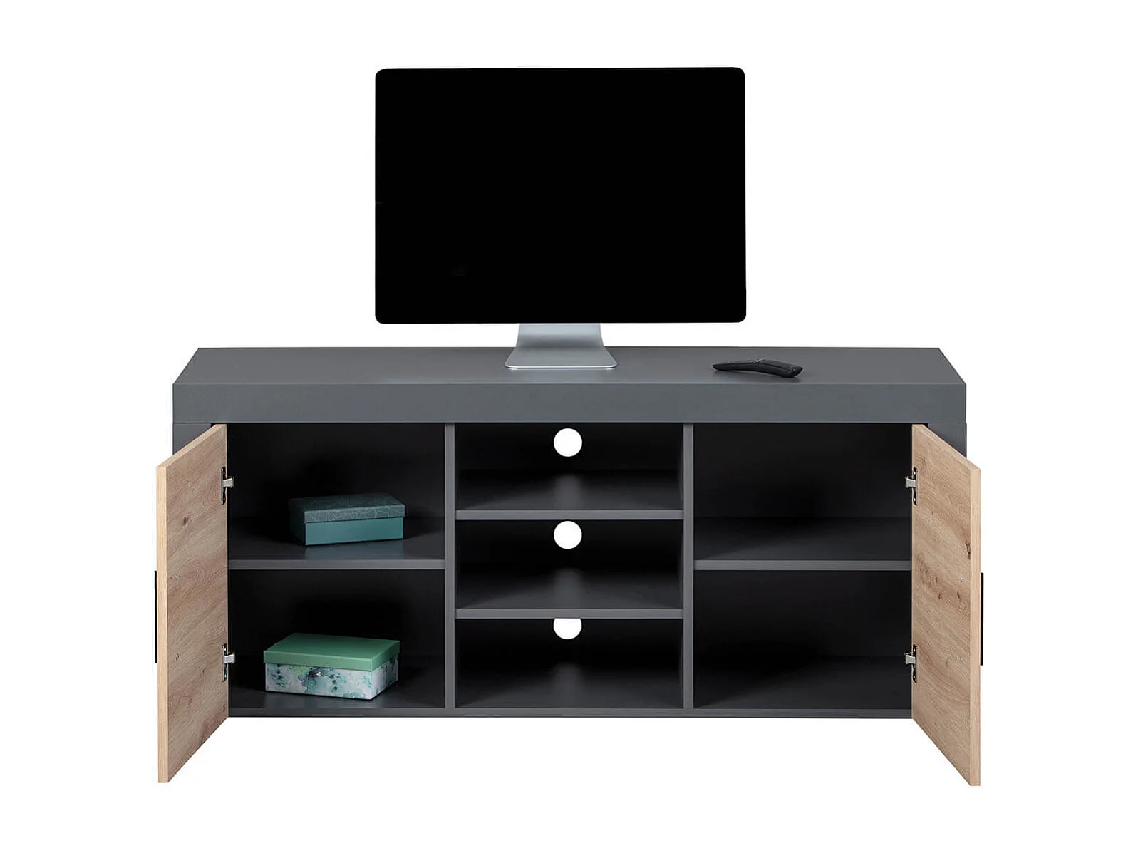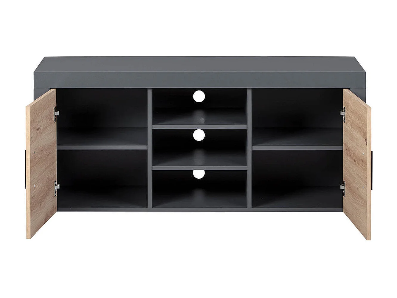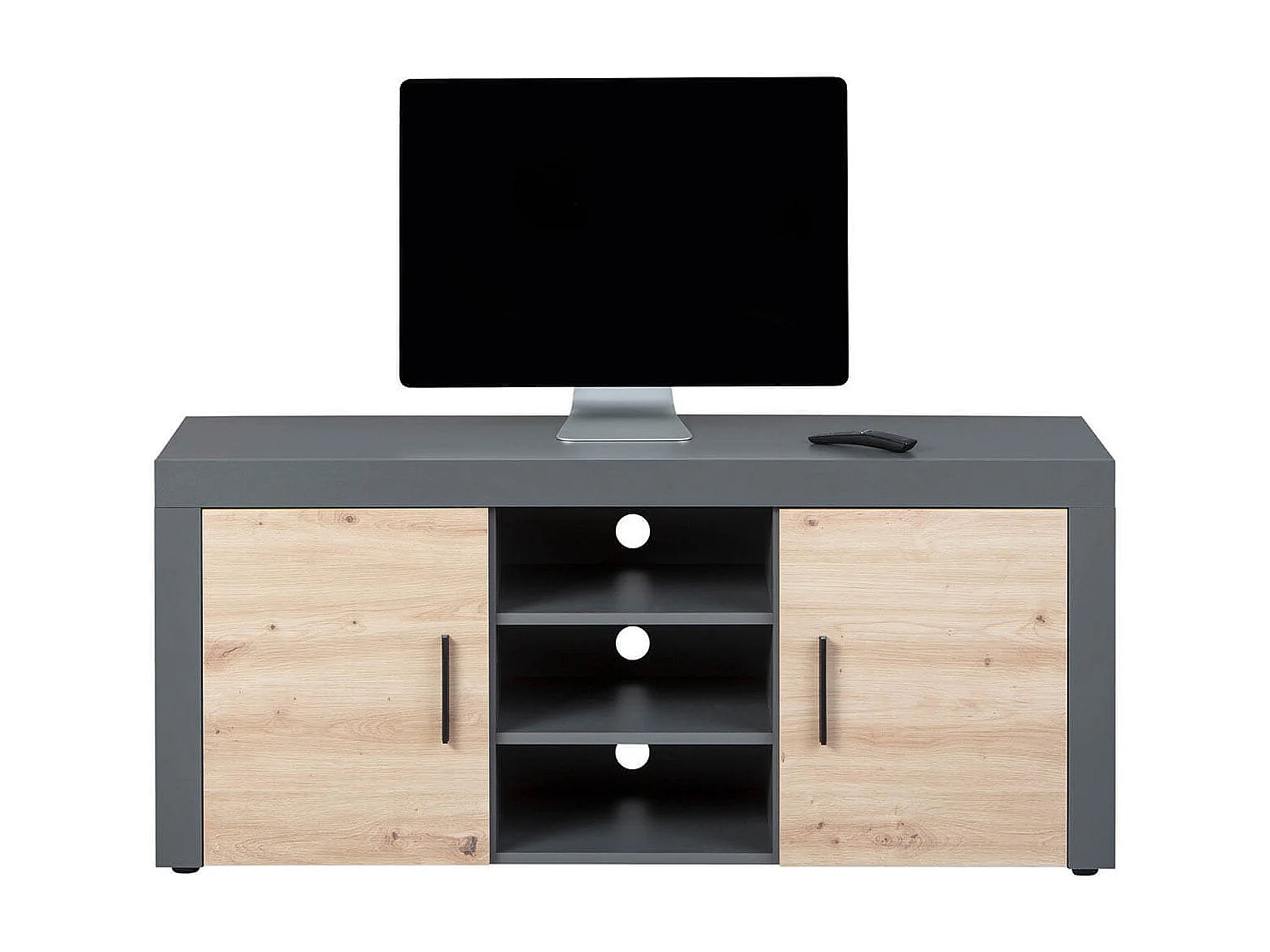 OCTOBER - Meuble TV 2 Portes 3 Niches Gris et Effet Bois