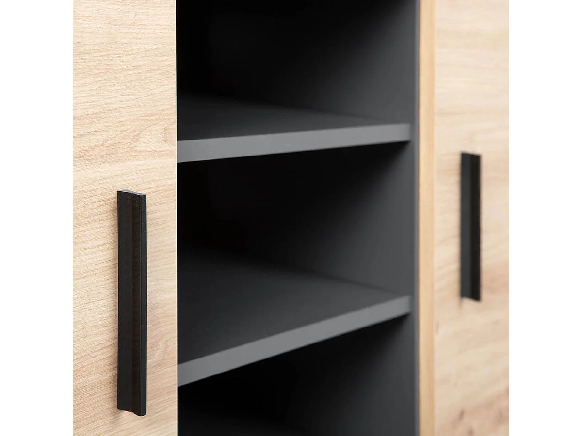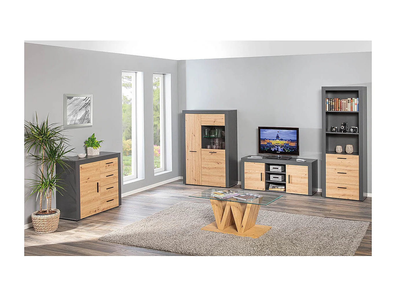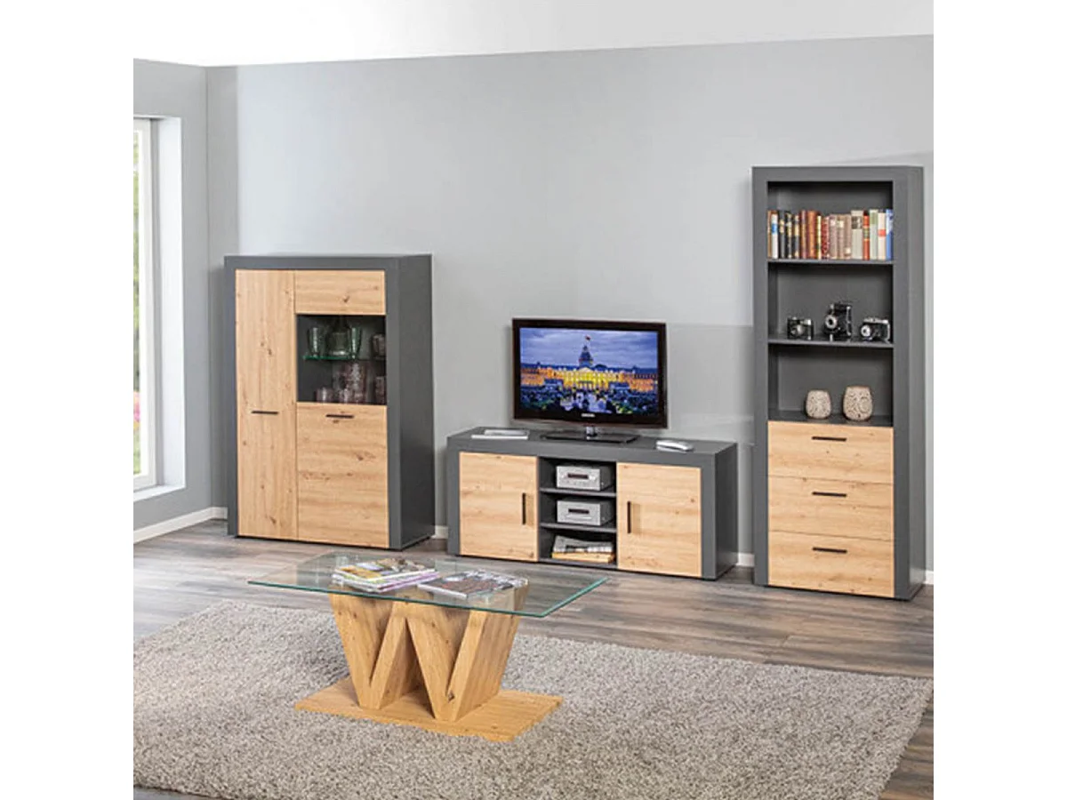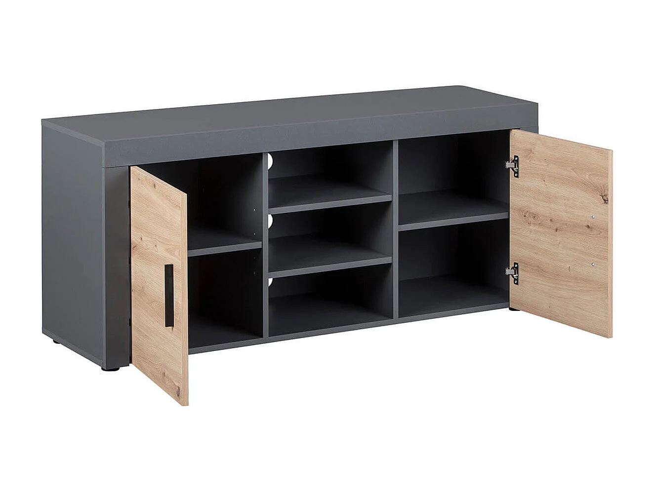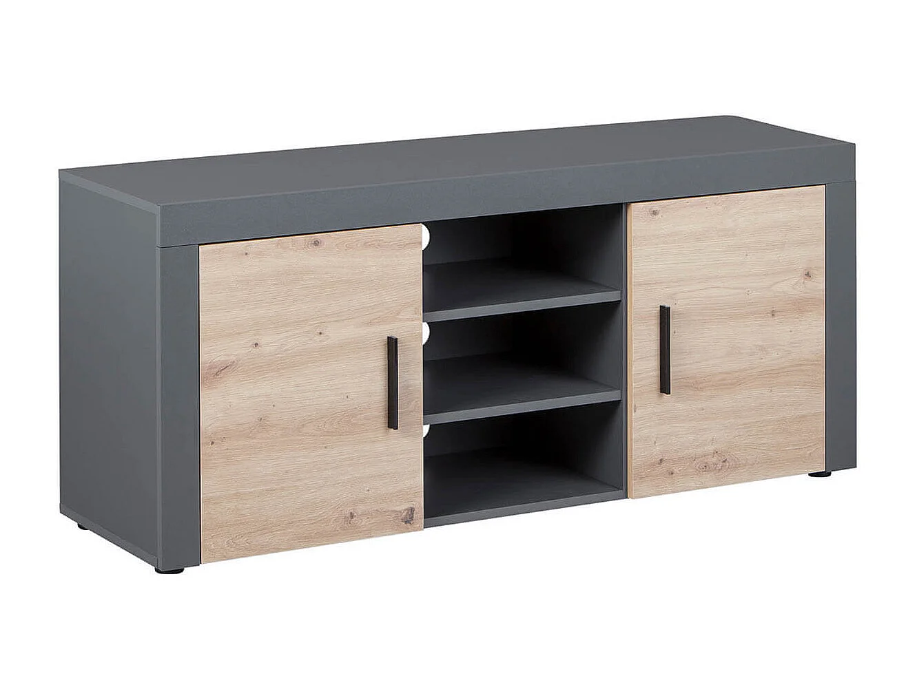 OCTOBER - Meuble TV 2 Portes 3 Niches Gris et Effet Bois