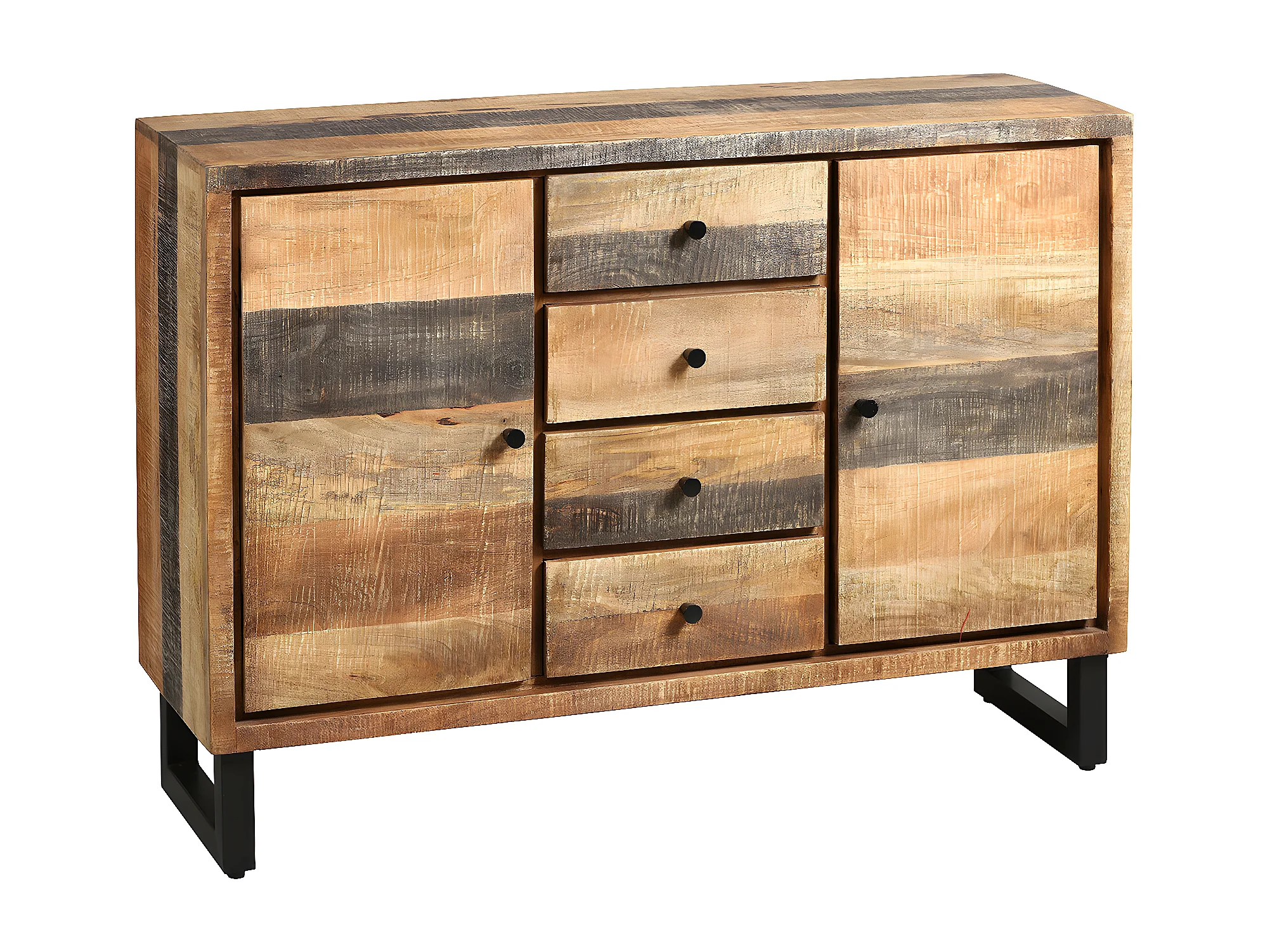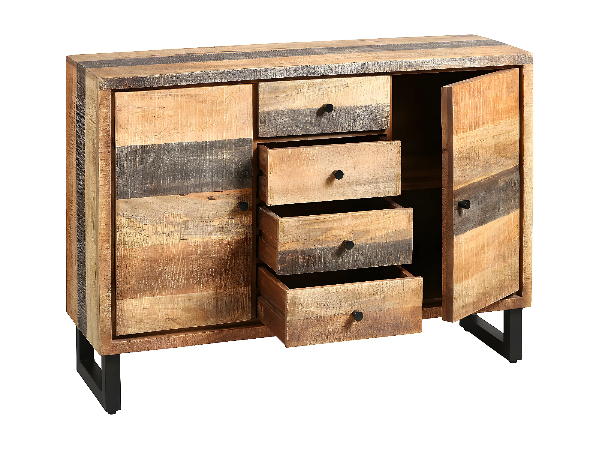ODILON - Buffet 2 Portes 4 Tiroirs Acier et Bois Massif