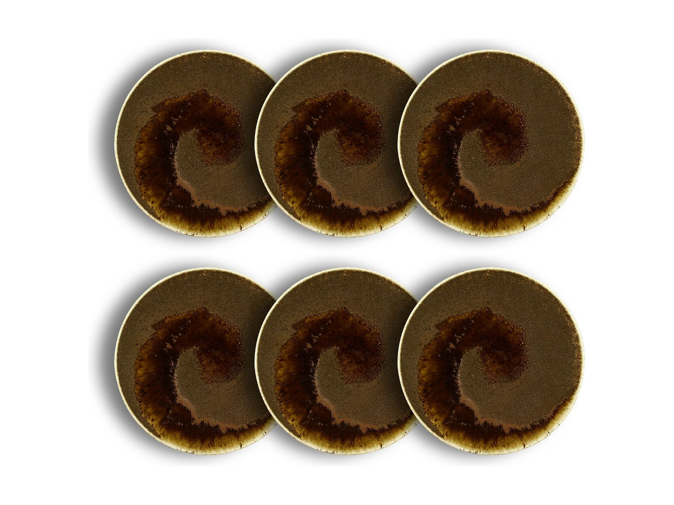 Ogo Living - Lot 6 Assiettes A Dessert Saturne 21cm En Porcelaine Marron