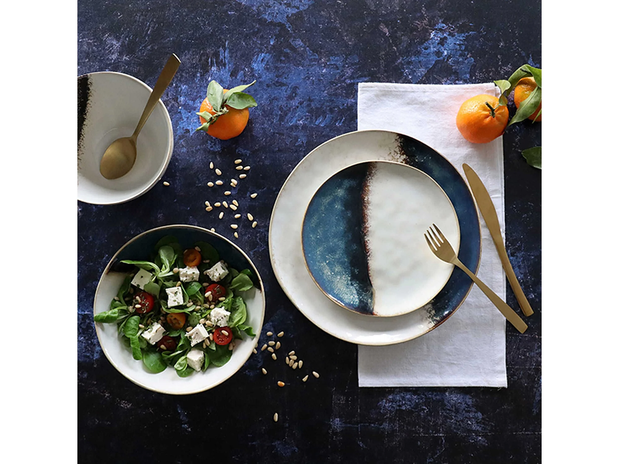 Novastyl - Lot 6 Assiettes Plates Heraclee 27cm En Gres Decor Bleu