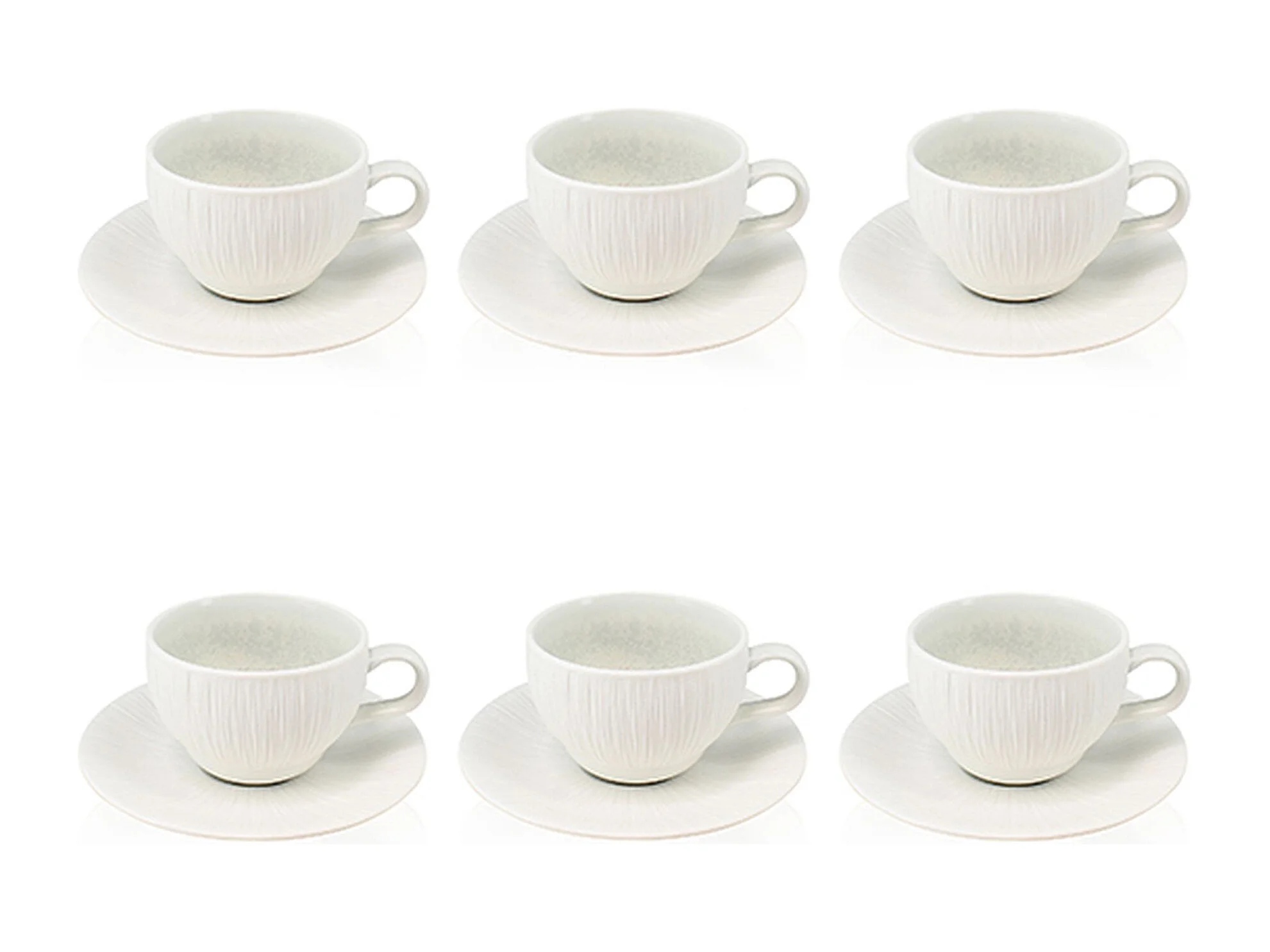 Ogo Living - Lot 6 Tasses 21cl Et Soucoupes 15cm Urus En Porcelaine Bleu Et Blanc