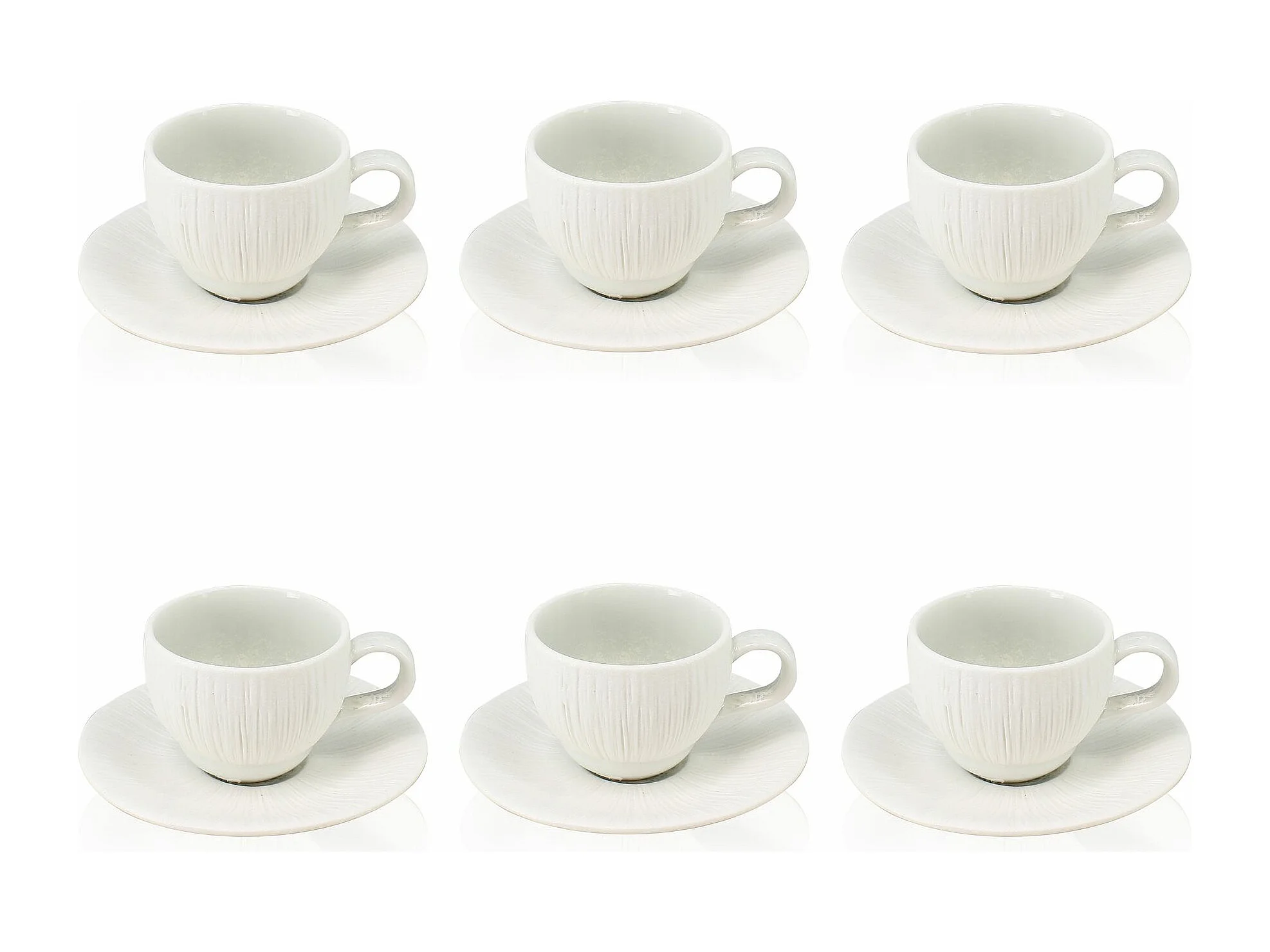 Ogo Living - Lot 6 Tasses 9cl Et Soucoupes 12cm Urus En Porcelaine Bleu Et Blanc