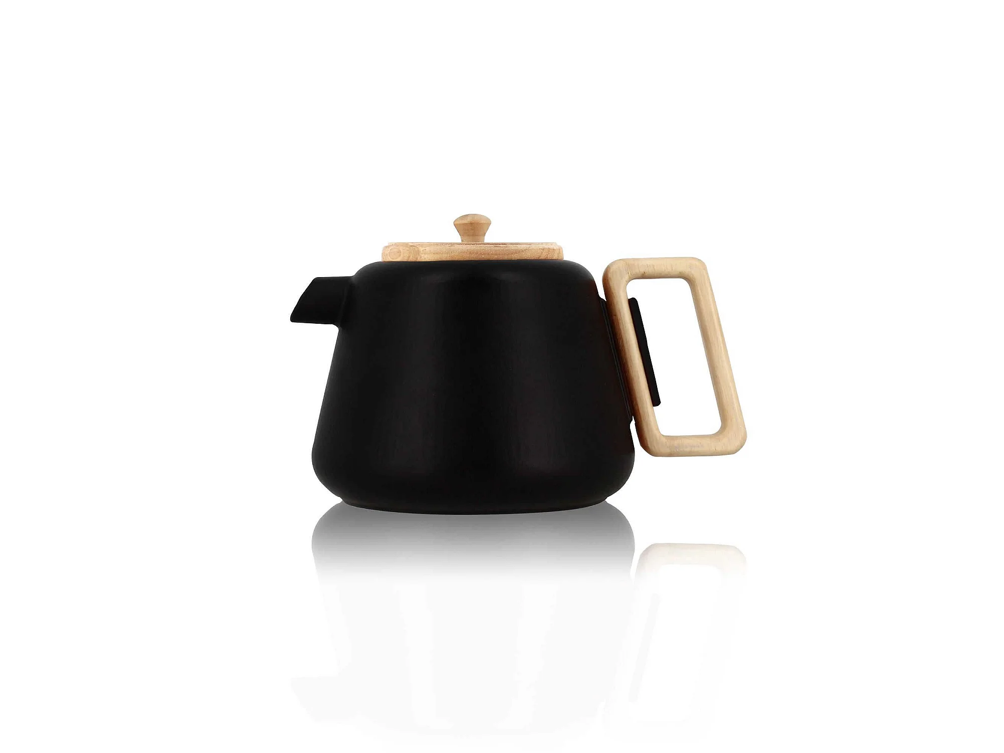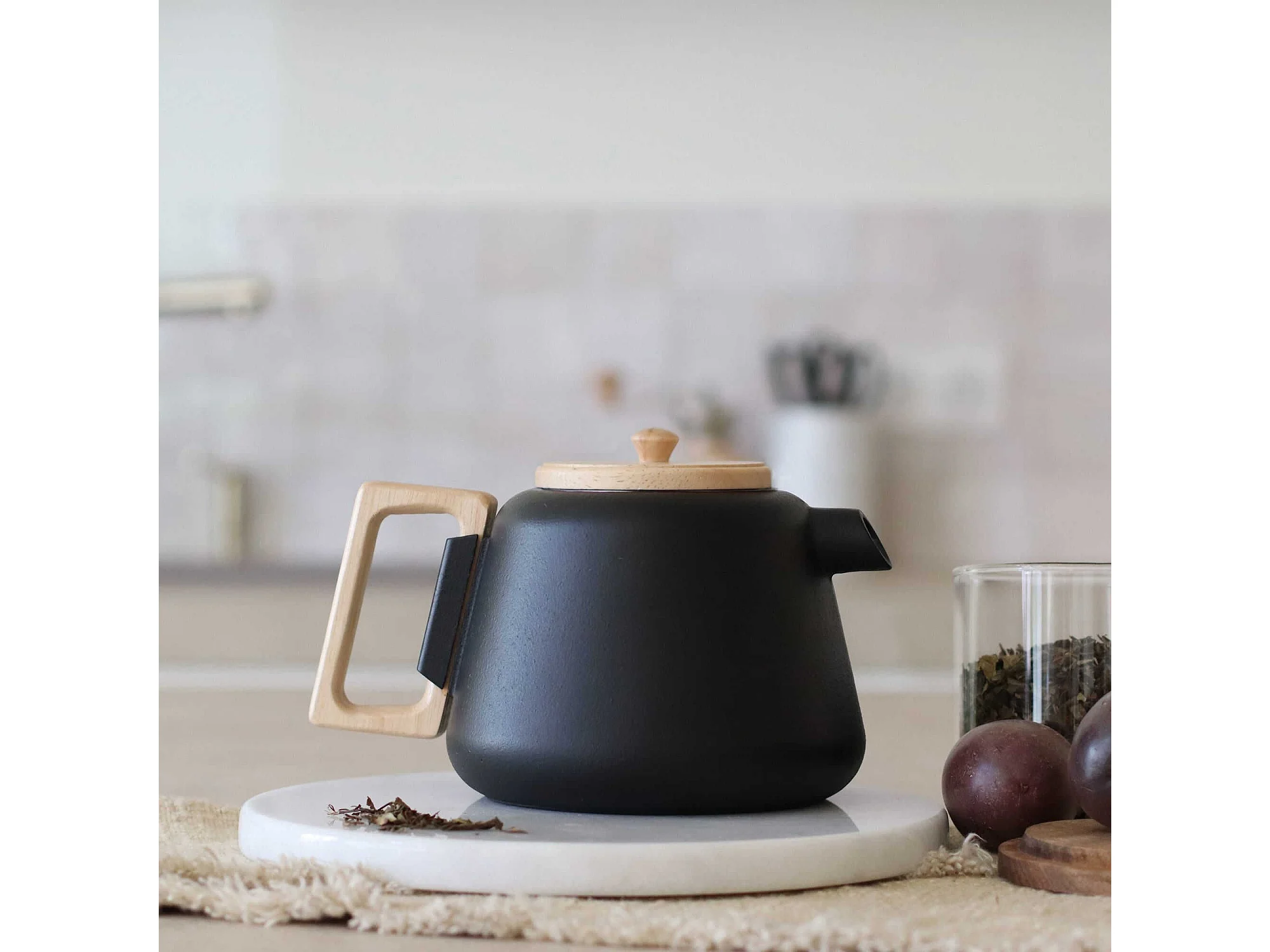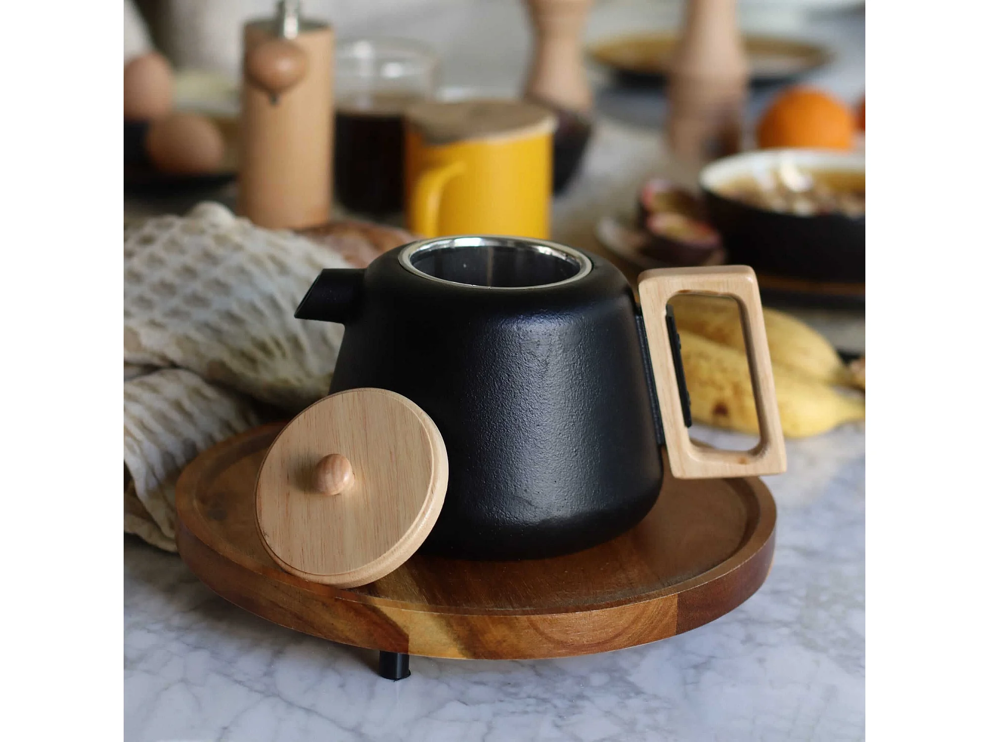 Ogo Living - Theiere Viggo 1000ml En Fonte Noir Avec Poignee Couvercle Bois