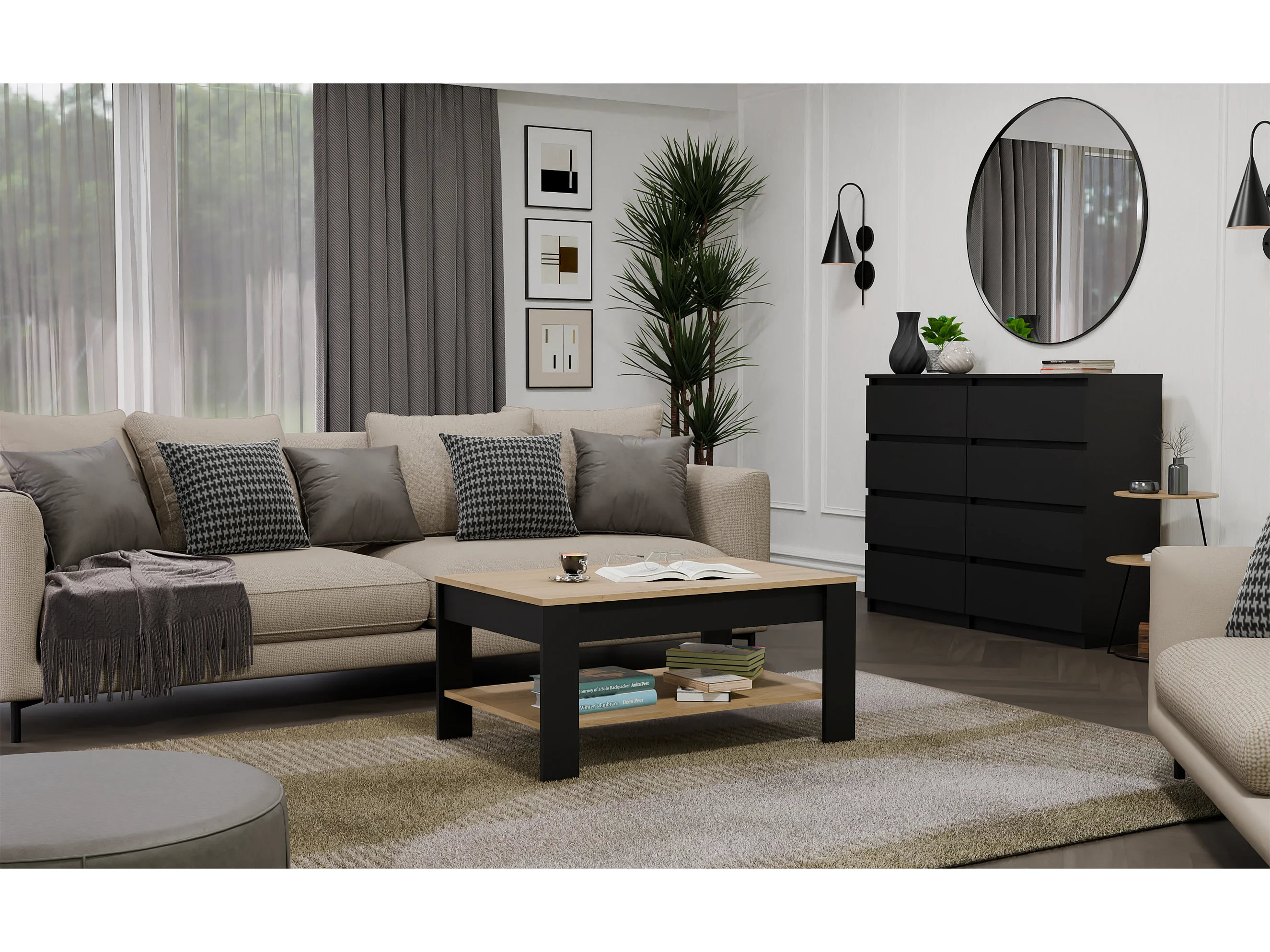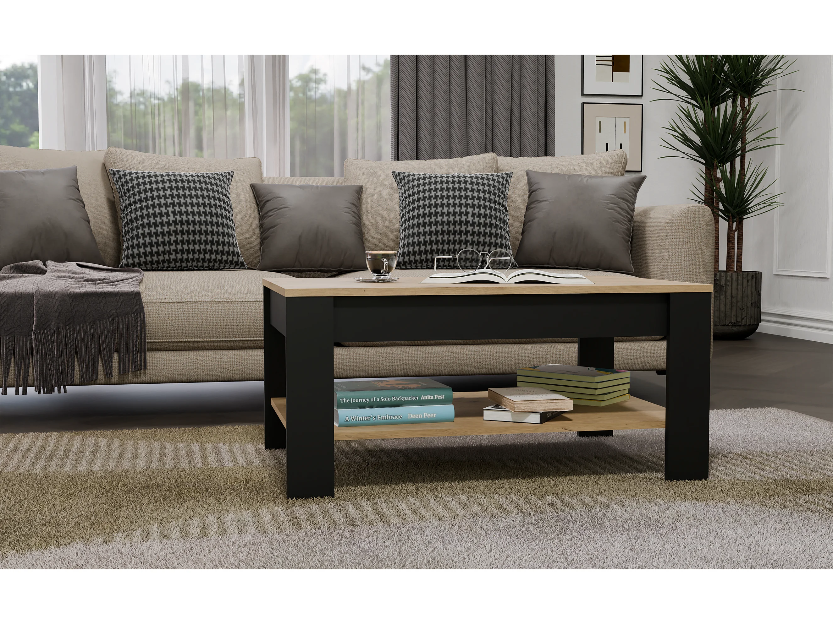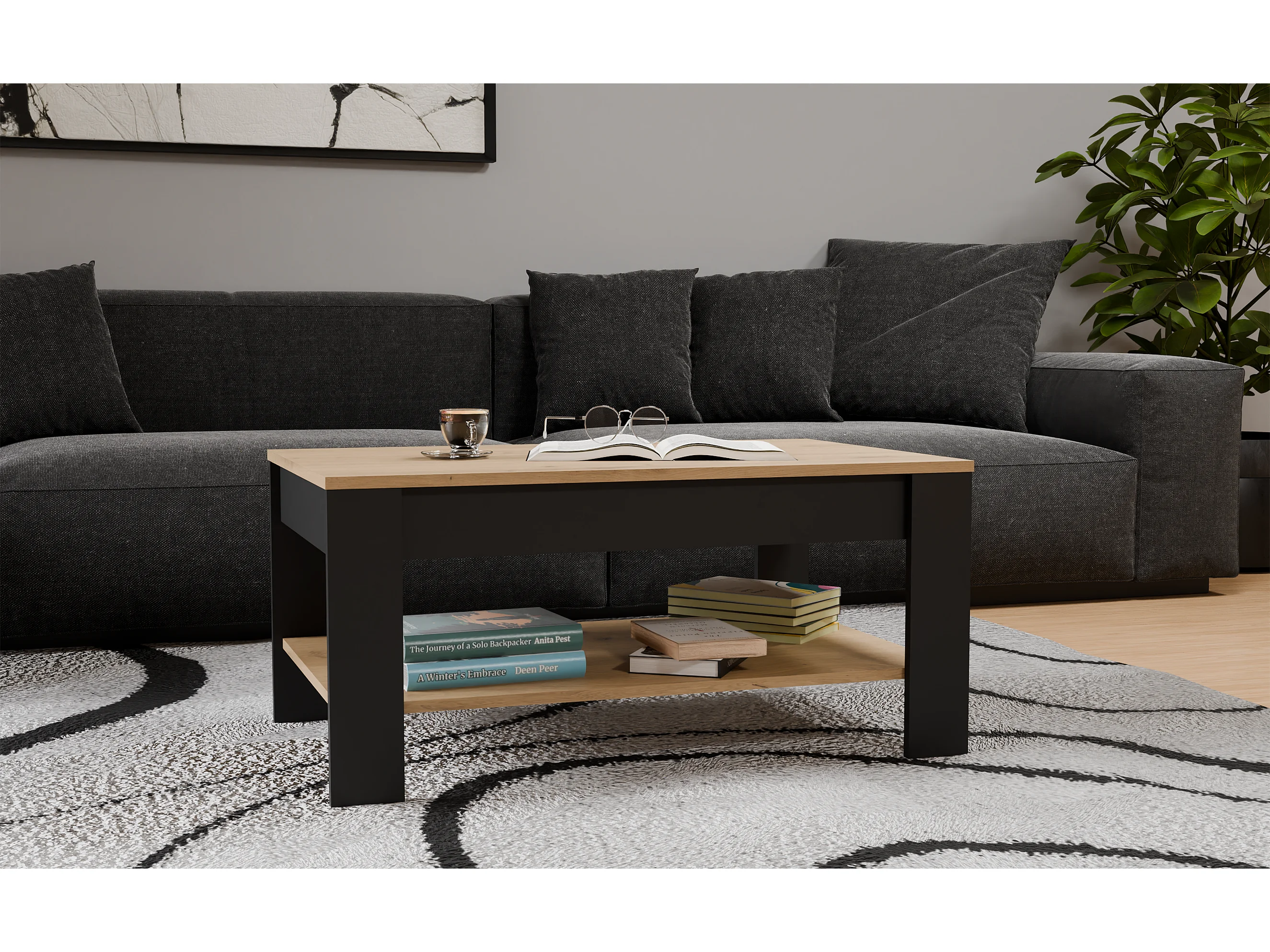 GUEST - Table Basse Aspect Chêne Miel et Anthracite
