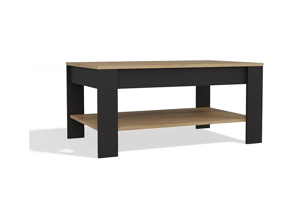 OHIO - Table Basse Chêne Artisan Noir avec Étagère pour Salon 93x58x43,5 cm