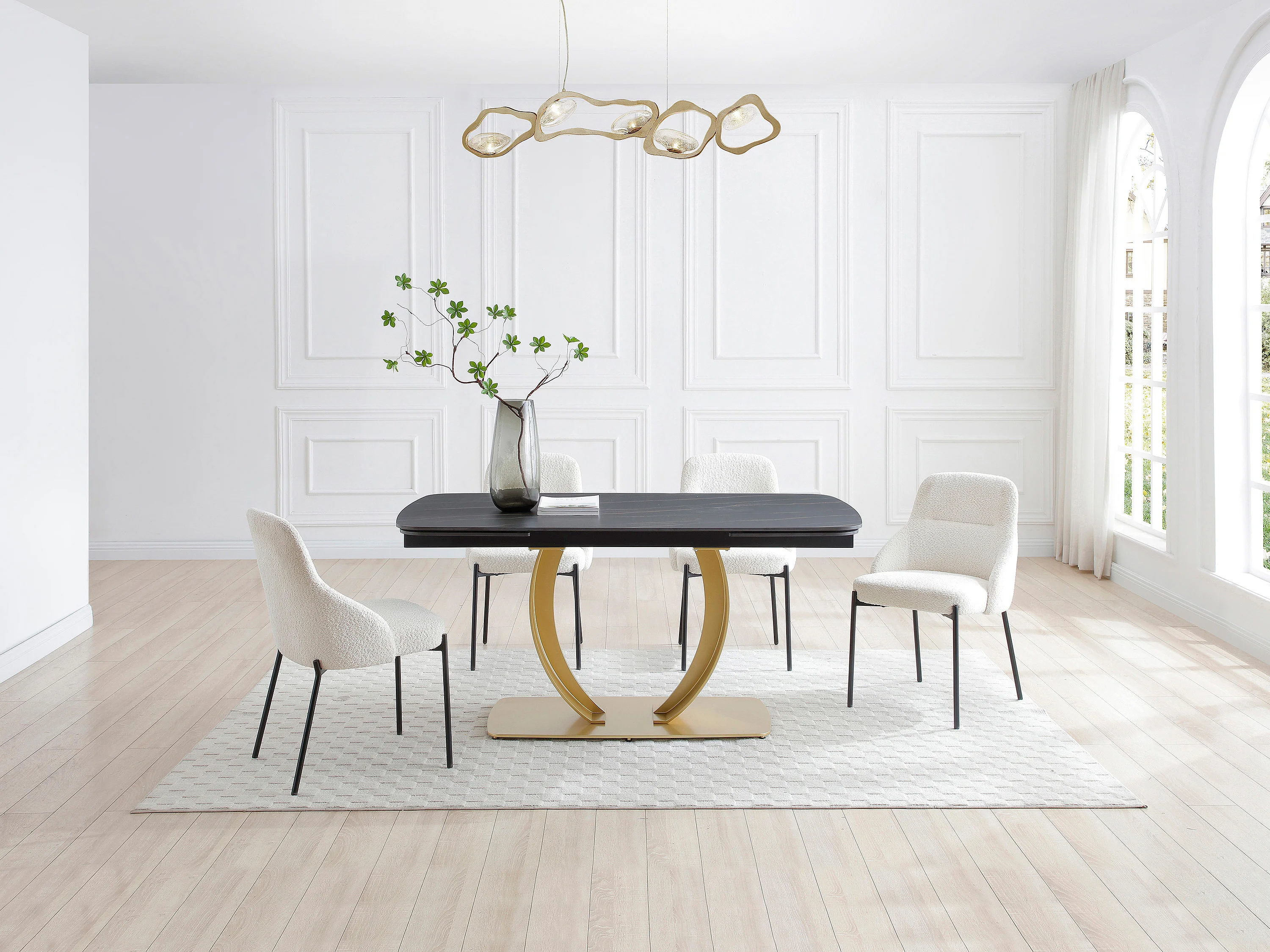 Table à manger extensible 6 à 10 personnes en céramique et métal doré - Effet marbre noir - OLIFIA de Maison Céphy