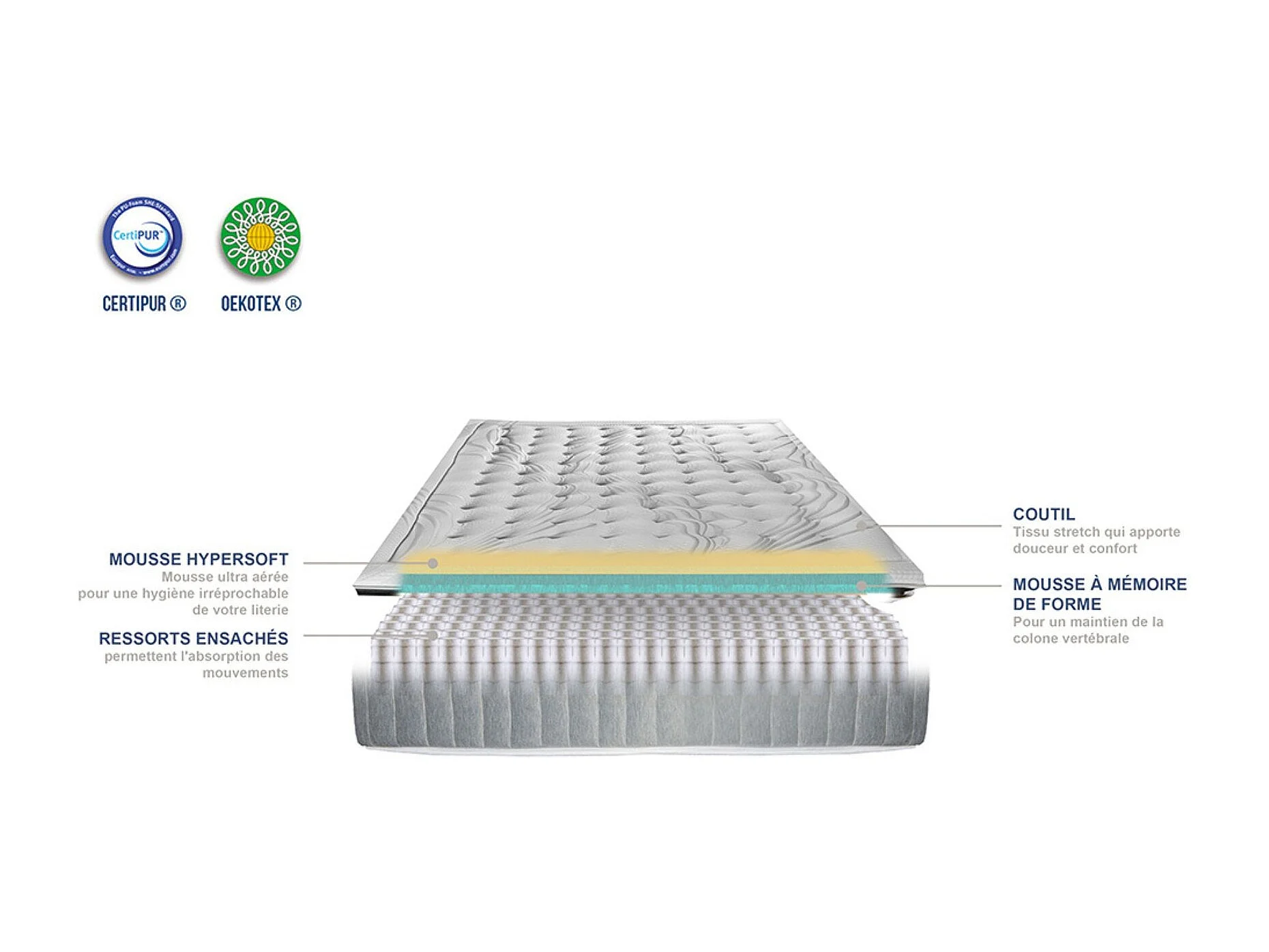 Matelas PHIGALIE - Ressorts ensachés & mémoire de forme