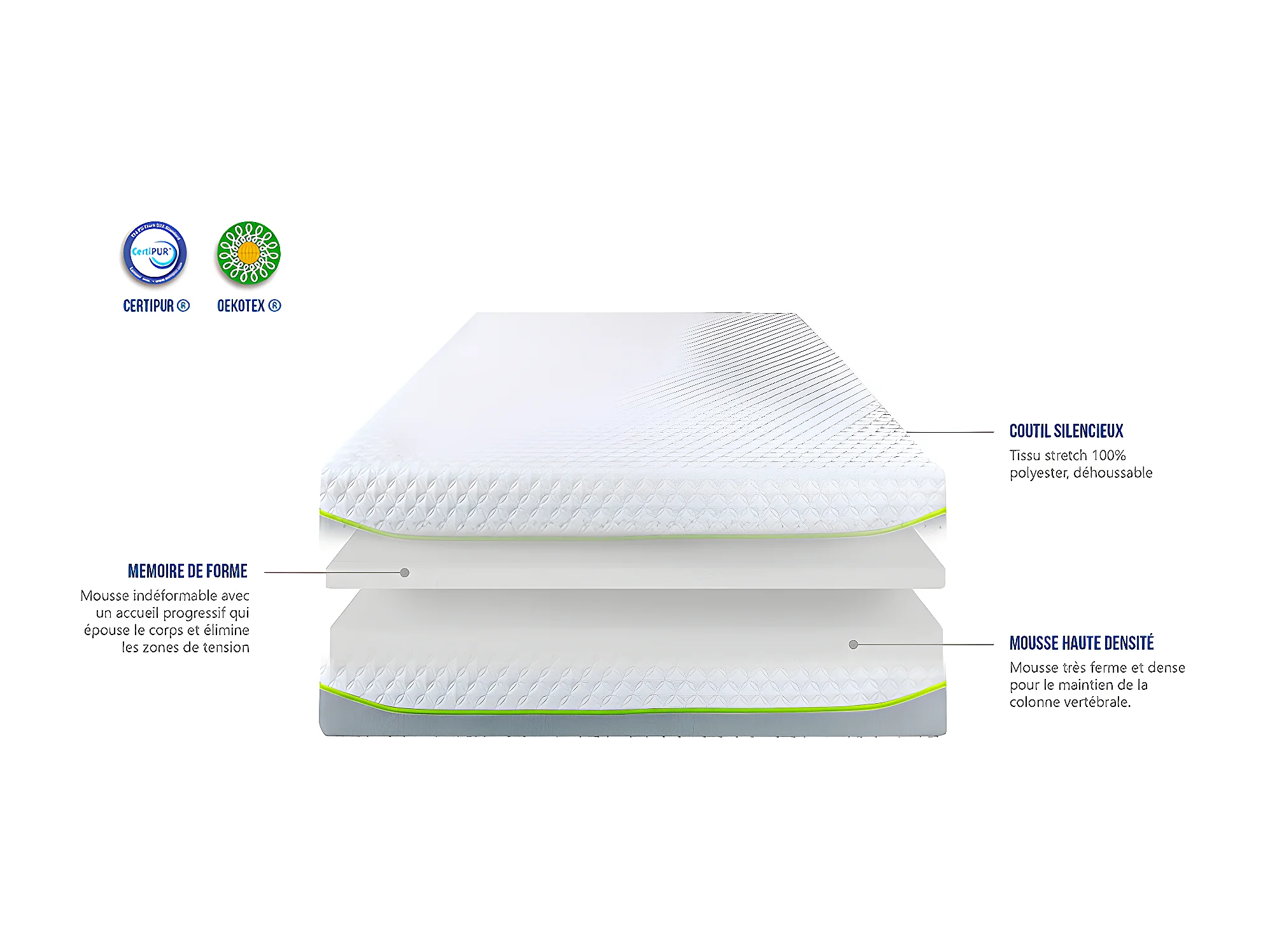 OLYMPE LITERIE | Pack Prêt à dormir ANTHEA 180x200 cm | Matelas Mémoire de forme + Sommier + Accessoires
