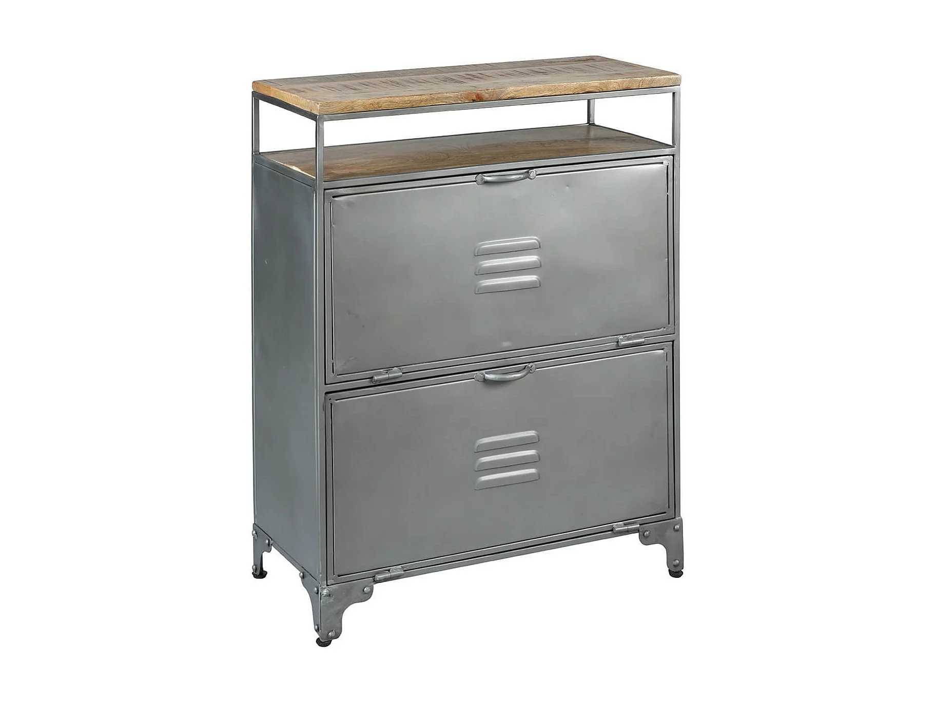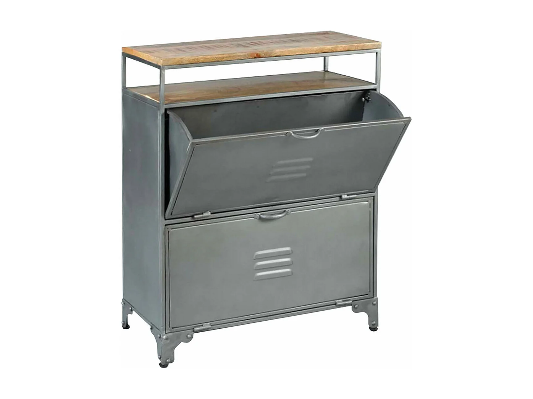 OMAYA - Meuble à Chaussures 2 Portes Acier Brut et Manguier