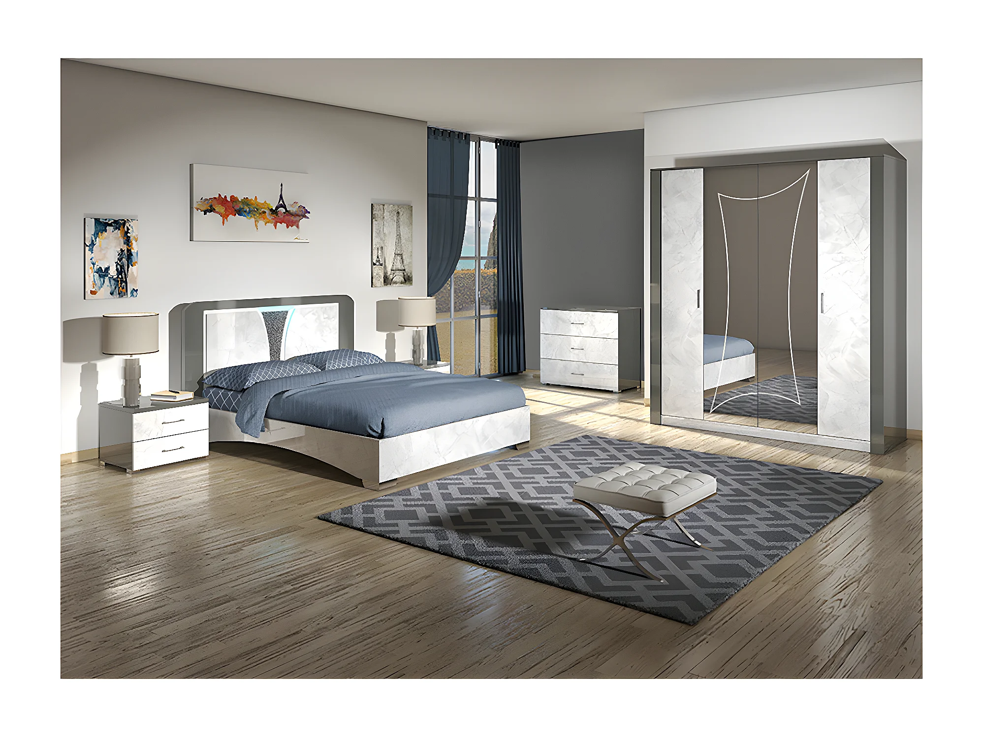 OMBELINE - Chevet 2 Tiroirs avec Poignées Chromées