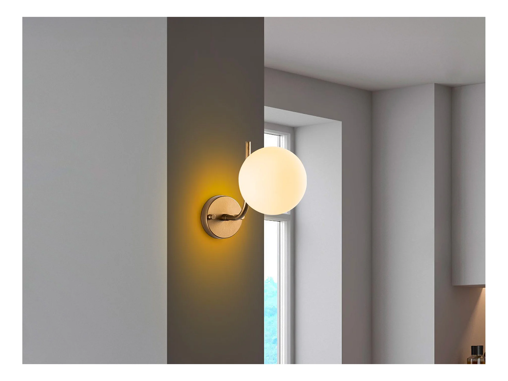 Applique murale en métal doré avec globe - L. 29 x D. 15 cm - ORBEA