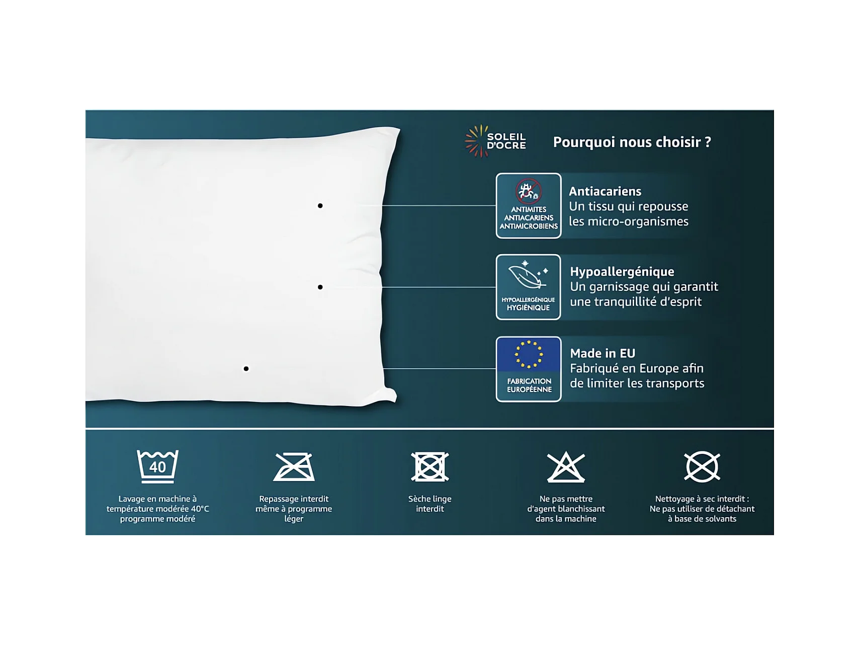 Oreiller anti-acarien LUXE 50x70 cm, par Soleil d'ocre
