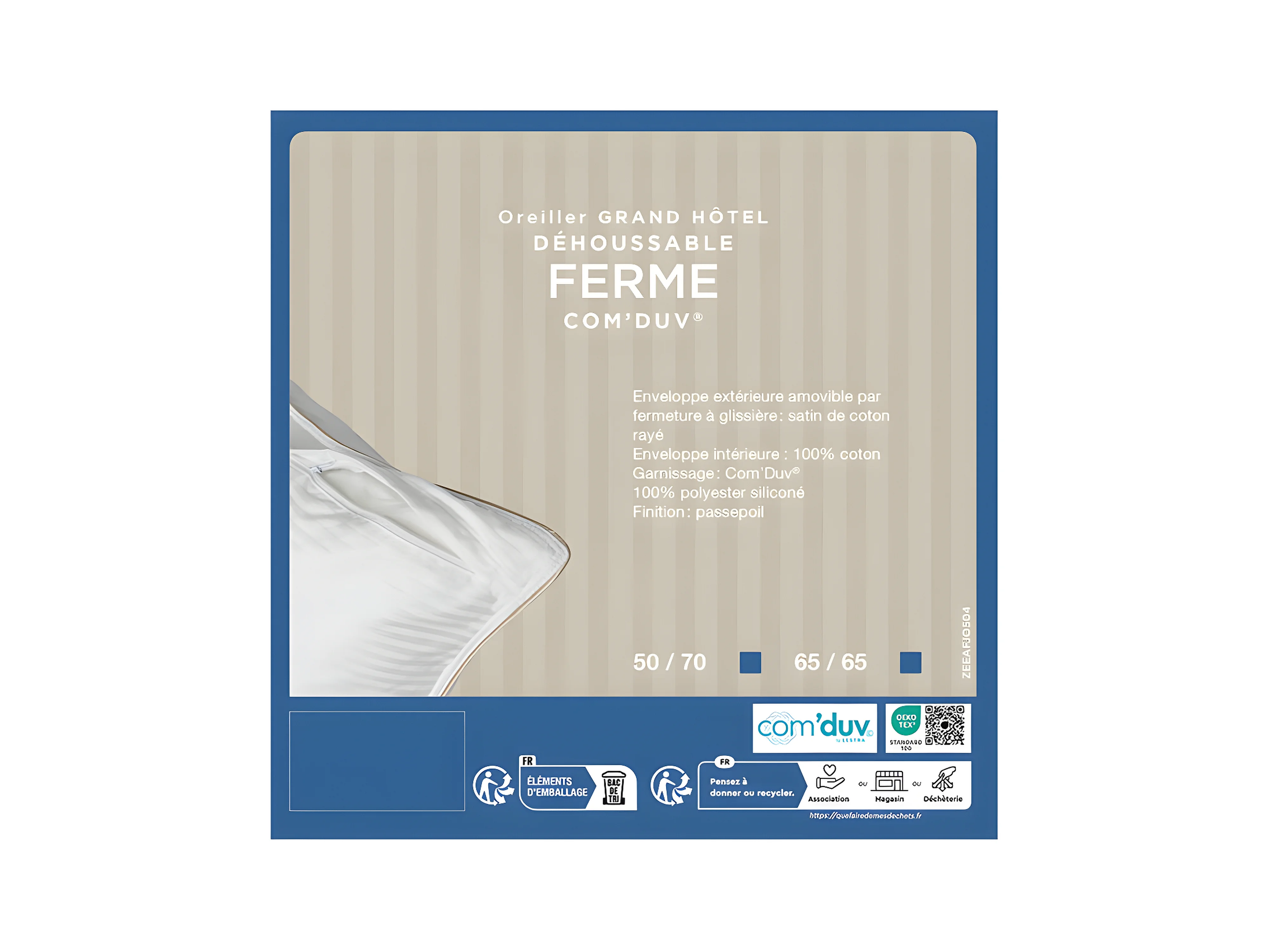 Oreiller "Fjord Grand Hotel" déhoussable Ferme Com'Duv Satin de coton rayé Lestra